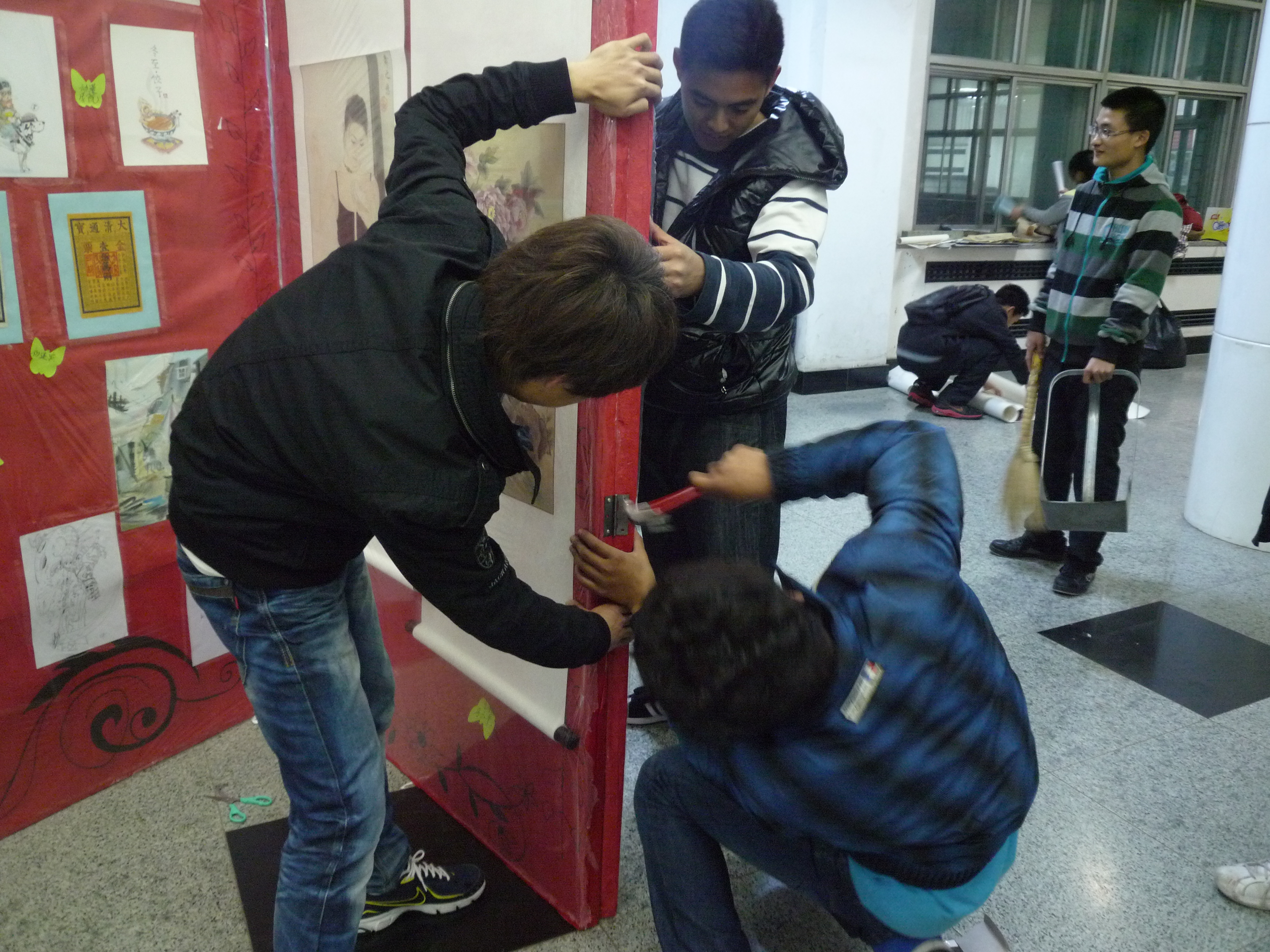 学生干部精心制作的展板上。一副副精美的艺术作品吸引了许多过往师生,面对喜爱的作品,他们或是驻足观赏,或是拍照留念,并且在留言簿上写下了自己的宝贵见解。