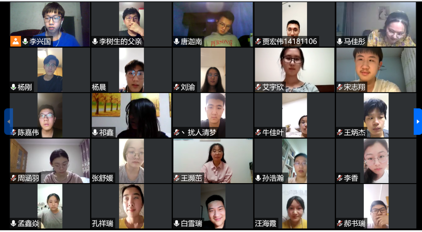 接下来,大家分享了在家学习的生活,同学们有的分享了自己最近读了哪些书,有的分享了自己和家人是如何采取防疫措施的,很久不见的同学们都表示对吉大对同学们很想念。