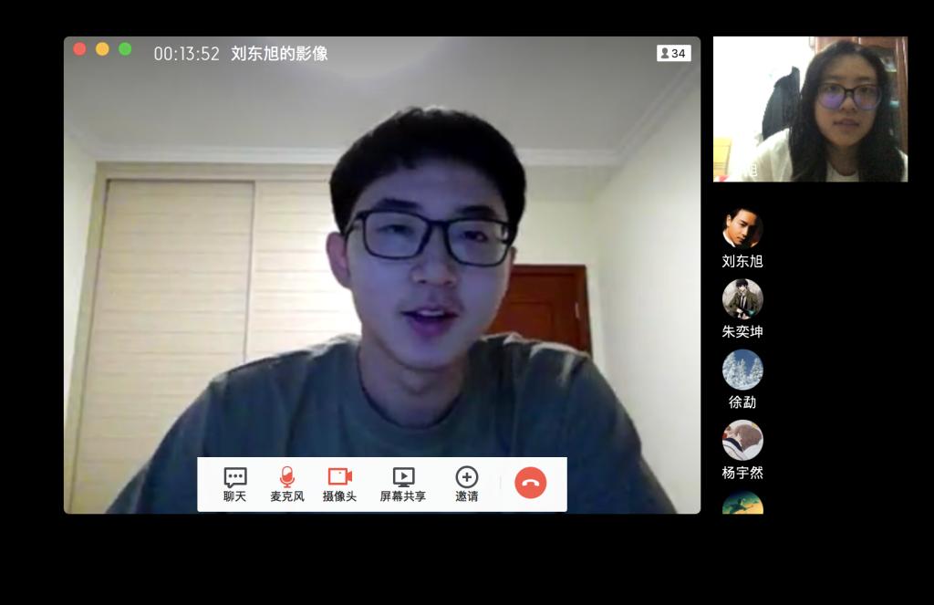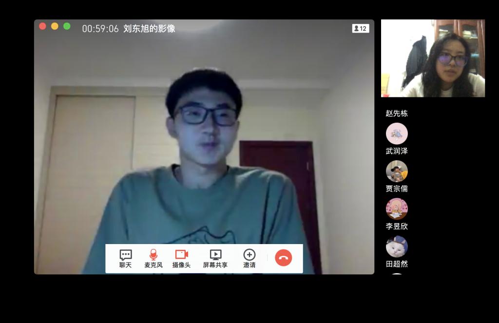 首先,班长便对线上课堂纪律进行了再强调,包括日常的课堂考勤,及作业完成情况等等,同时对近期的考试等相关活动进行了再通知,比如宣布了线上考试的一些注意事项等等。通过对课堂纪律及考试要求的强调,同学们更加端正起了对学习的正确态度。其次,班会便进入到了大家公开闲聊的愉快环节。其中为了活跃班会的气氛,有几位同学自告奋勇进行了才艺表演,成功打开了大家的话匣子。同时,班委也对同学们的心理状态有了大致的了解:大部分同学线上学习期间心理状态稳定,少部分同学存在完成作业较为拖沓的情况,针对此种情况,班委同学在班会结束后也进行了沟通。最后,几位同学依次分享了一下学习感悟与经验。其中,团支书同学给大家分享了英语四级的考试经验,同学们认真倾听且受益良多。