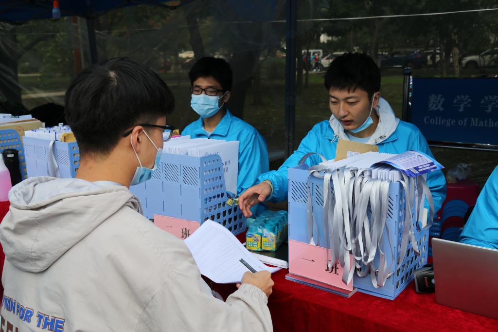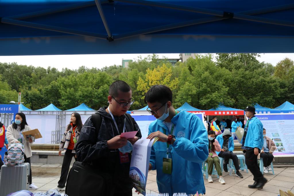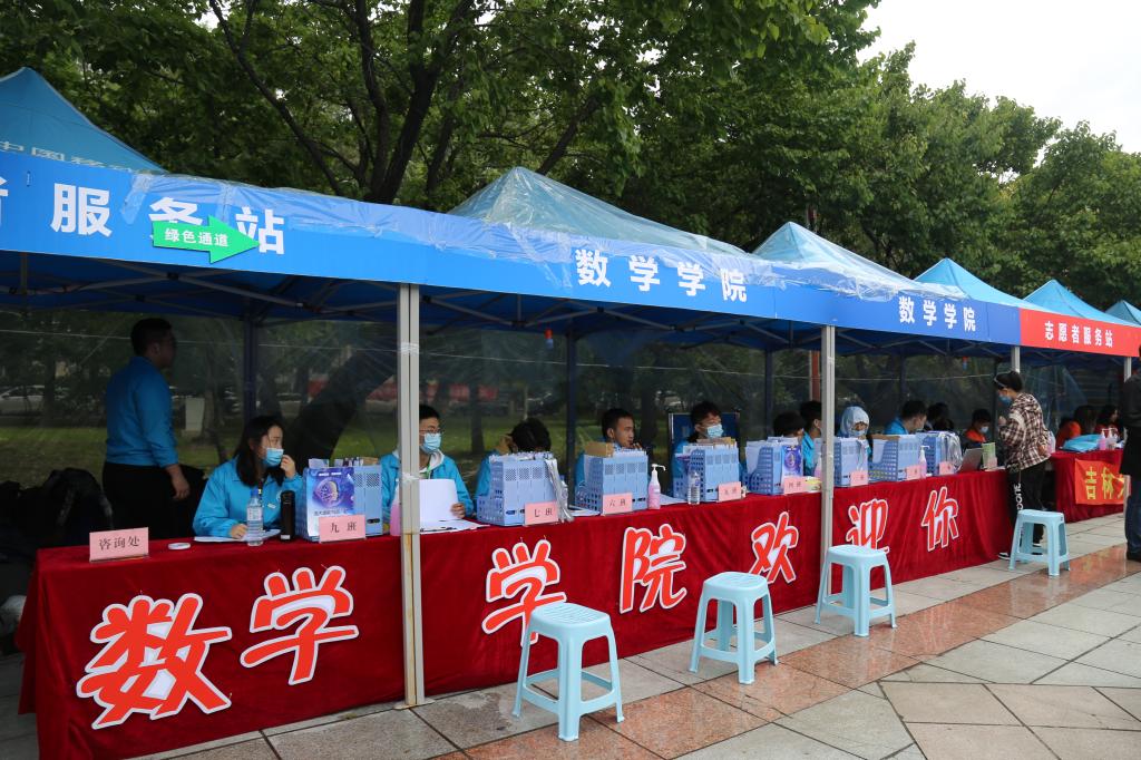 接新生工作正式开始。新生持录取通知书,从校门进入校园,在校门接待处需测温消毒、健康问询、核查“吉祥码”。校门口,安排了志愿者们迎接新生并带领他们去接待点。迎新接待点设在五月花广场,随着新同学陆陆续续的到来,志愿者们迅速帮助他们把行李寄存好,有条不紊的引领新生完成报到的所有程序。新生到达学院接待站后,进行身份核验(人脸识别),签订健康承诺书,领取一卡通、“健康包”、新生材料袋、寝室钥匙。在学生志愿者引领下,新生乘坐校内导站车或自行前往宿舍。到达宿舍楼下后,由学院志愿者引导学生办理入住。在迎新工作进行的同时,校党委书记姜治莹、校长张希等先后莅临迎新现场亲自指导工作。h动画