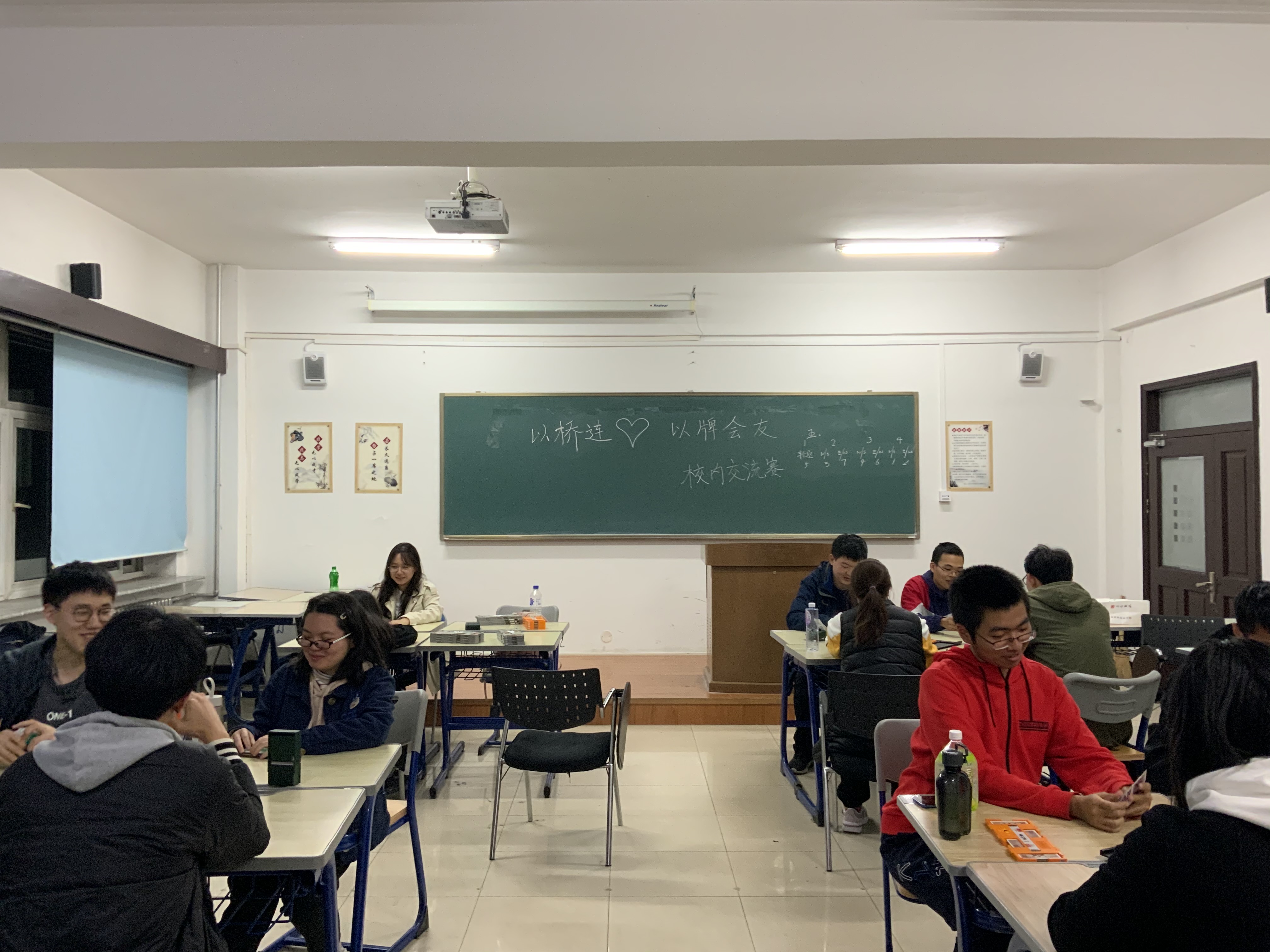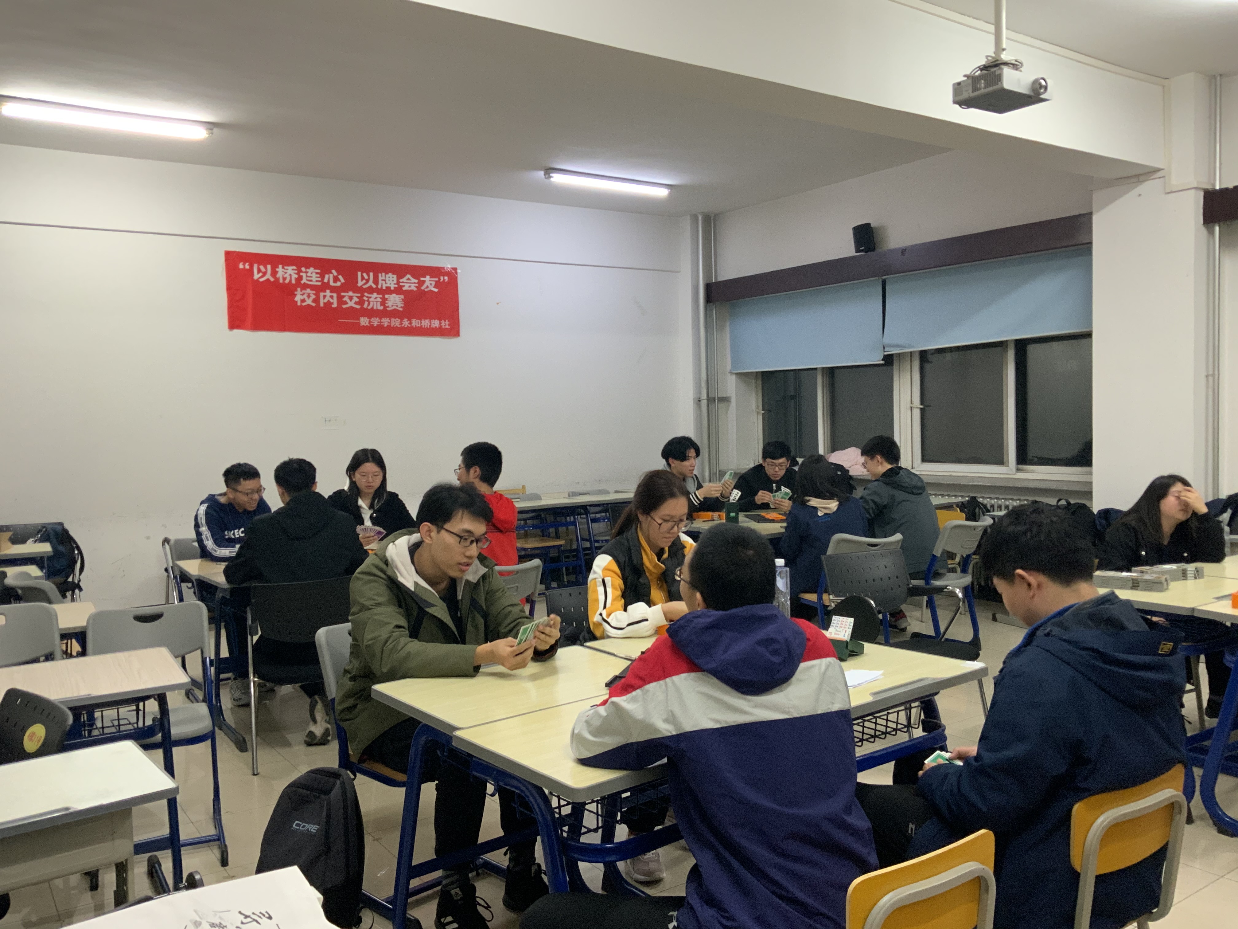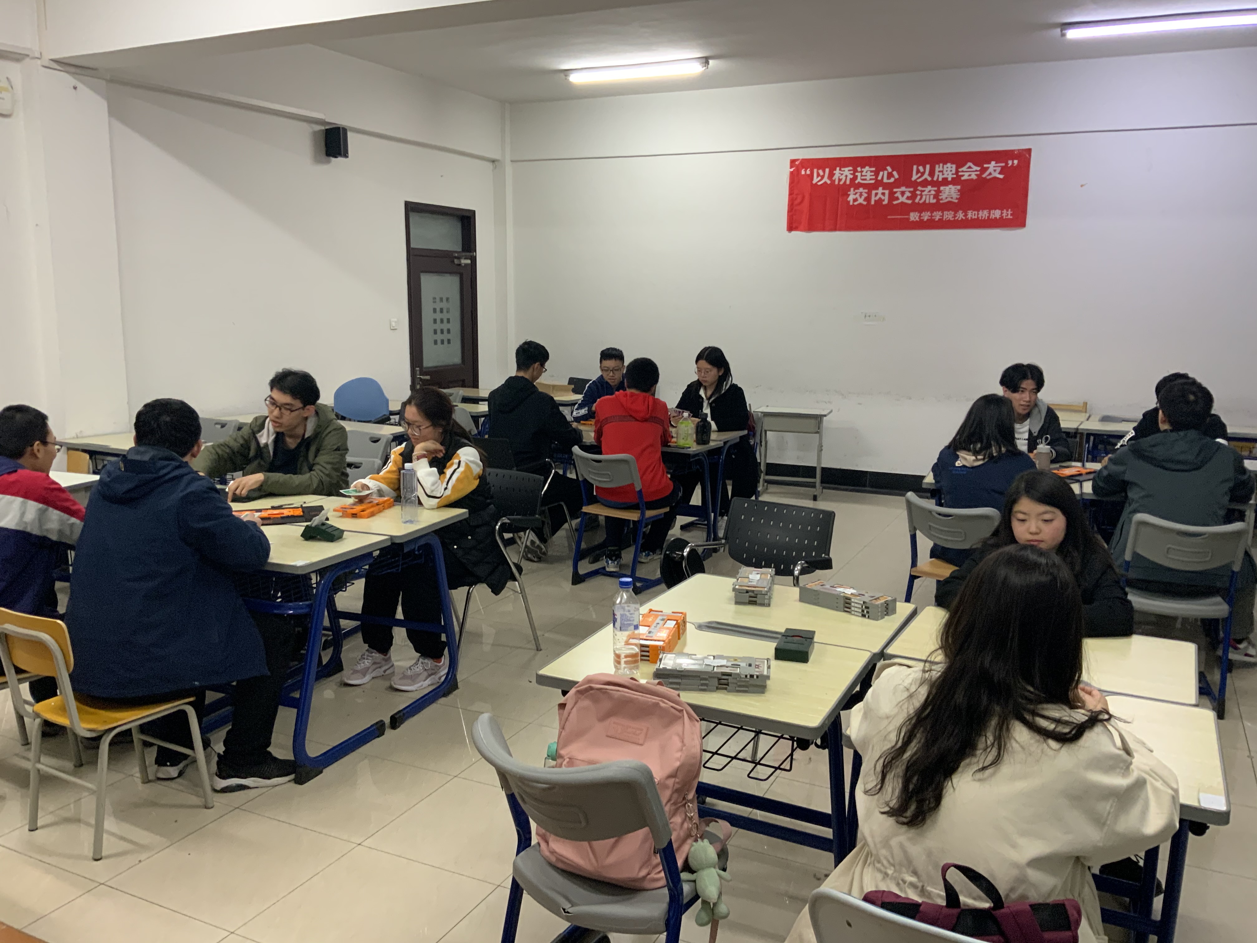 永和桥牌社在经信教学楼A105教室举办了“以桥连心 以牌会友”校内交流赛,其中,参赛选手不乏来自h动画