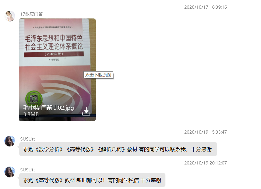 易书在线活动自开展以来,同学们热情高涨,完成了多笔交易单,丰富同学们在校园里的生活,给新、老生提供一个交流沟通的平台。同时,本次活动也给大二至大四的同学们一个机会来收拾整理自己的物品,给新生一个机会最便捷最优惠地挑选到对自己最有帮助的资料笔记。