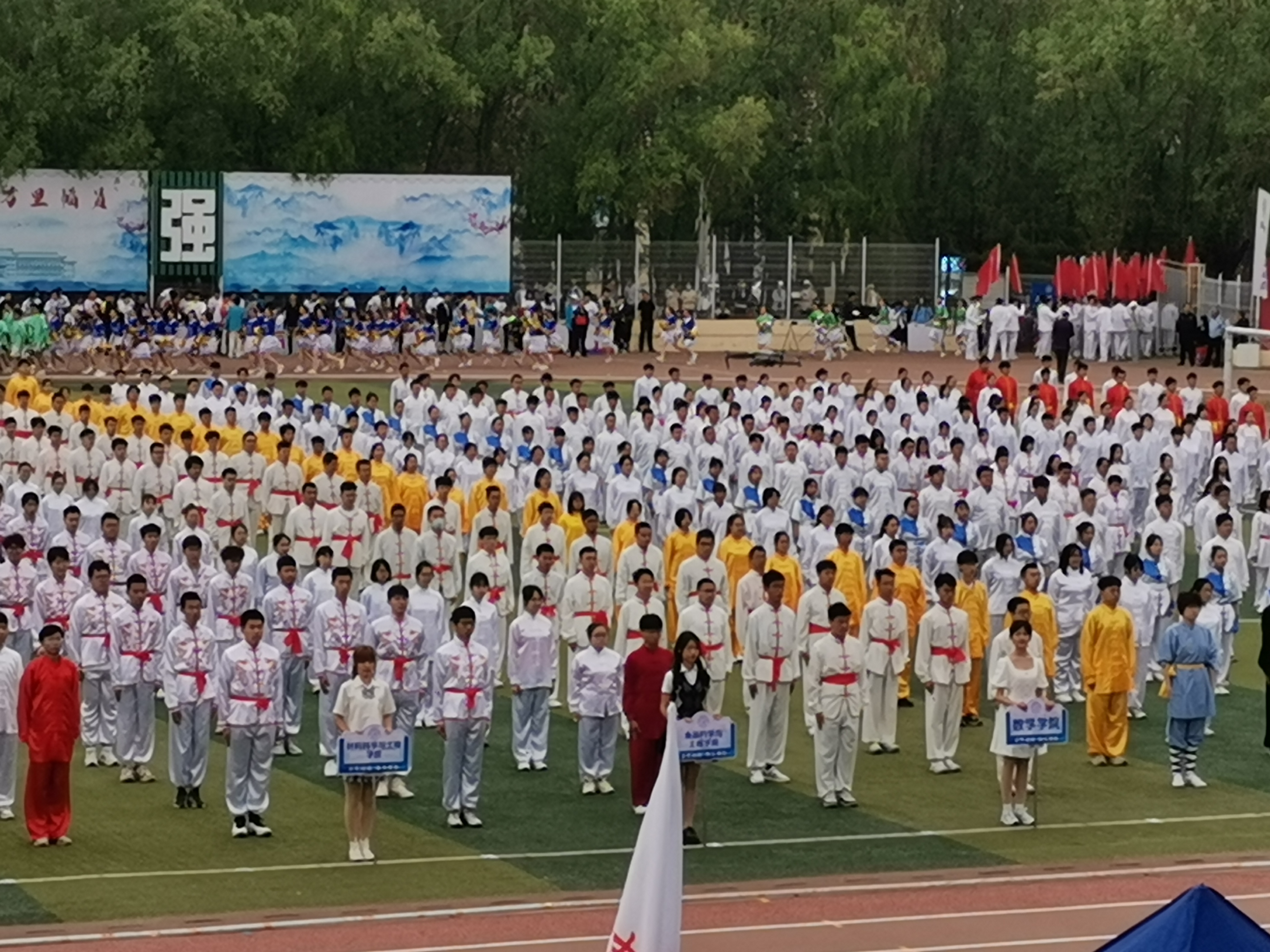 于2021年5月23日和28日开展了全校八极拳展示活动,本次展示比赛由全校33个学院一千多名学生共同献上。