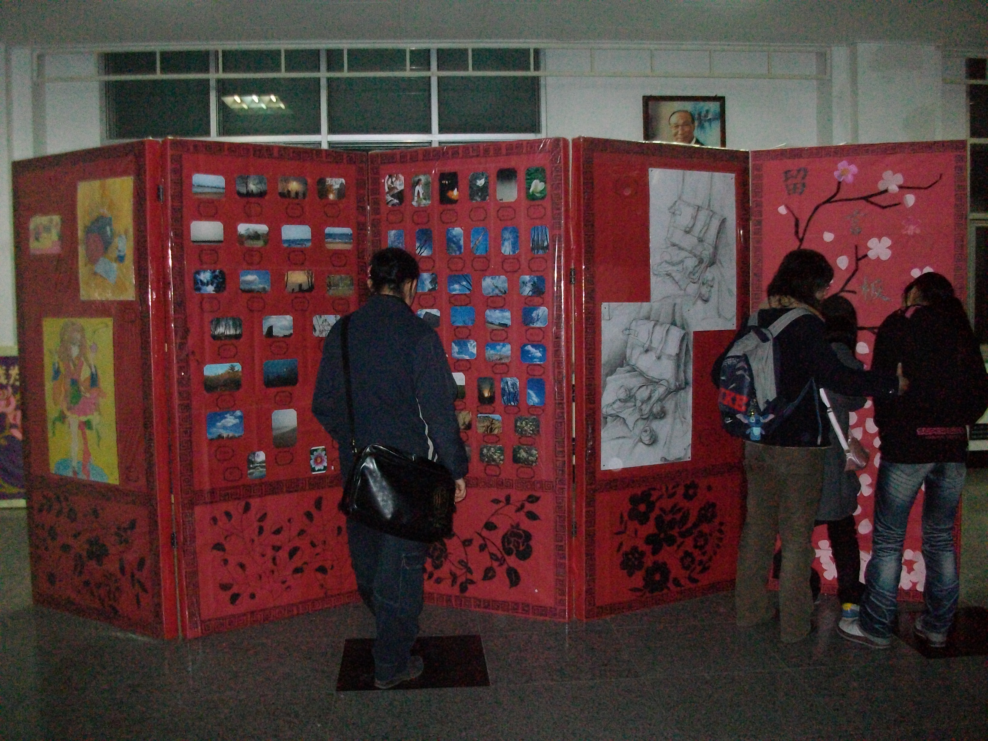 艺术节展览期间,逸夫教学楼大厅成了艺术的殿堂,一幅幅精美的作品吸引了广大师生,大家纷纷驻足欣赏,徘徊在自己喜爱的作品前不肯离去。许多人在留言簿上写下了对作品的极高评价和自己的宝贵意见。
