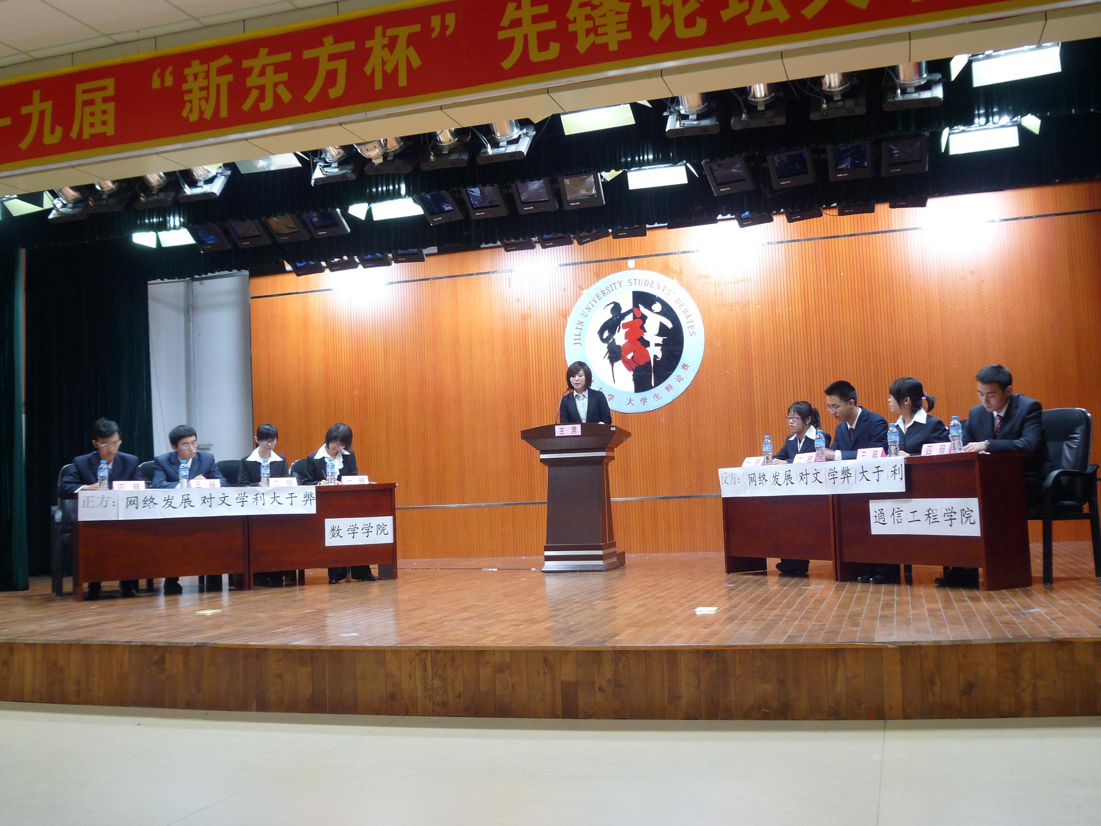 11月7日下午,h动画 第十九届“新东方杯”先锋论坛大学生辩论赛在田家炳活动中心A座拉开了序幕。社联主席王宇领衔出赛。h动画 团委副书记刘浩,学生会副主席孙玉莹,李东,尹闯带队观战。