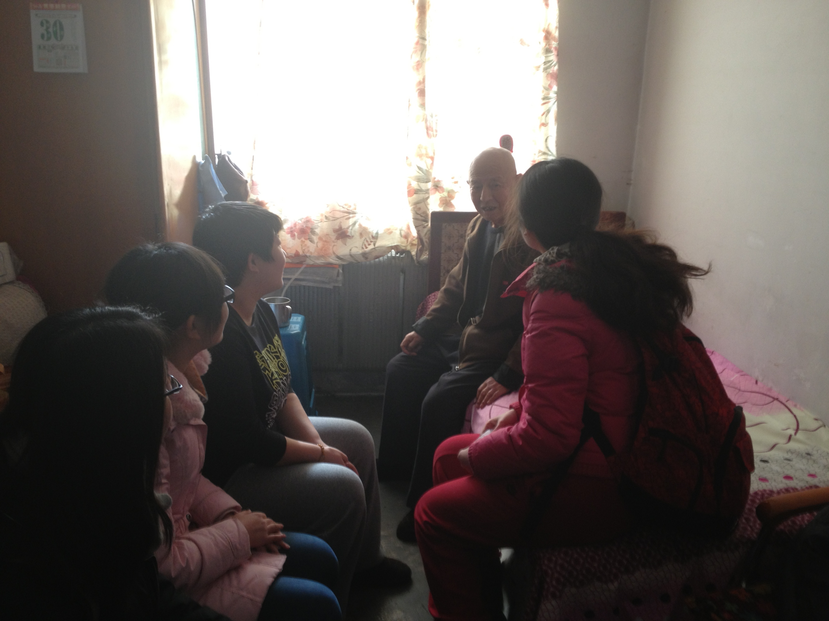 2月8日,团队成员又来到家在南湖社区的抗美援朝志愿军人朱茂祥老人家中拜访,并为老人带去了水果等慰问品。朱茂祥老人给队员们讲了抗美援朝战争的一些故事以及当时在那个年代的一些经历,同时还为队员们介绍了改革开放的背景以及在当时的影响。队员们通过和老人交谈获得了很多在书本上得不到的东西。