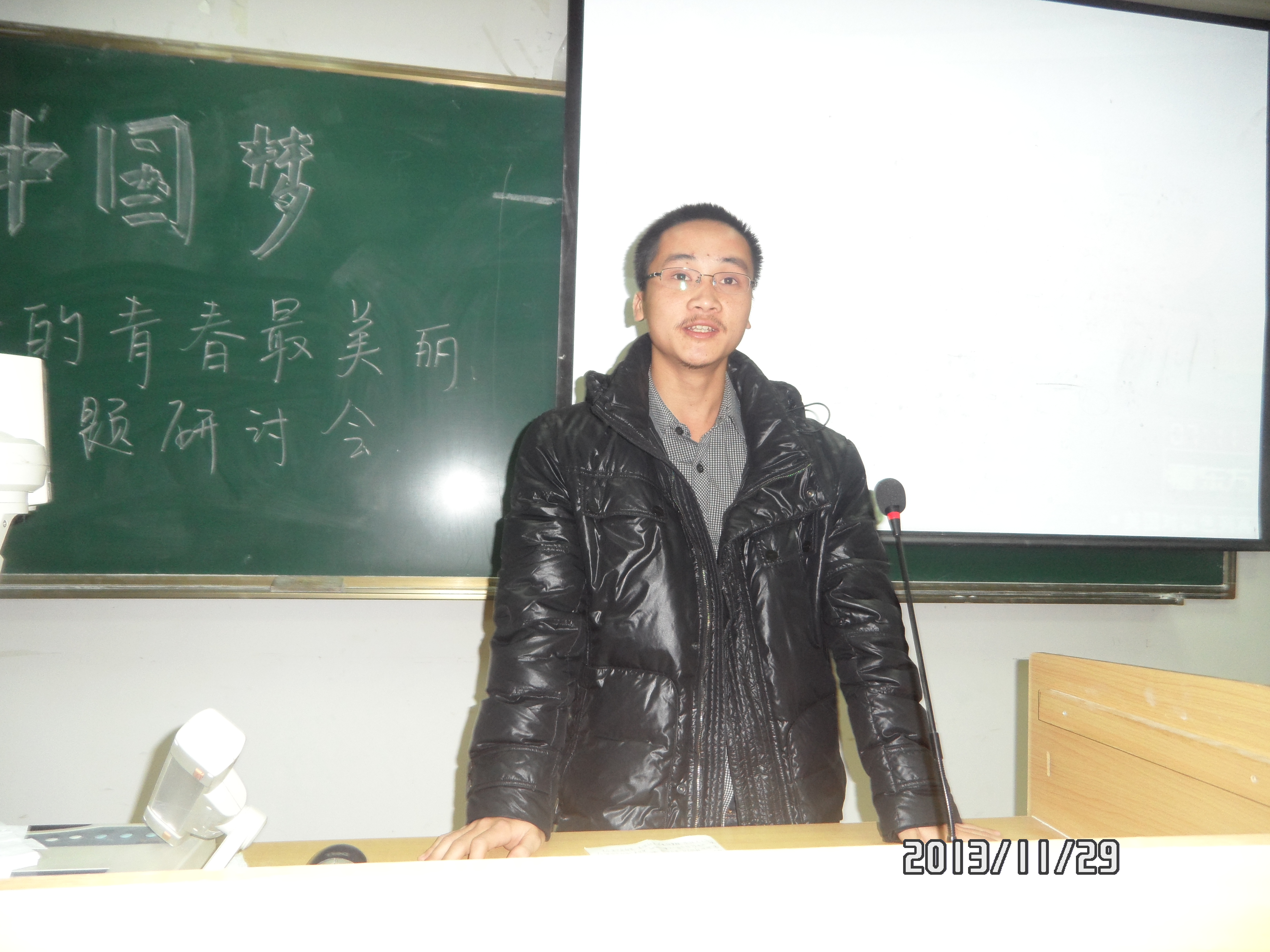 举办此次活动的主要目的是通过观看关于“解读十八届三中全会公报”的视频来让大家进一步加深对中国梦的了解与认识,通过同学们围绕“我的中国梦之奋斗的青春最美丽”的话题进行探讨交流。使大家对青春、对理想、对奋斗有更深层次的理解。活动开始,赵老师同大家一起观看了关于“解读十八届三中全会公报”的视频,同学们感触颇深。随后同学们轮流发表自己的看法和见解,关于青春关于梦想大家联系现实,各抒己见,信心满满,展现了青春的风采。活动最后,赵老师为大家讲述了他对青春与奋斗的理解,并且就此次活动做了深刻的点评。