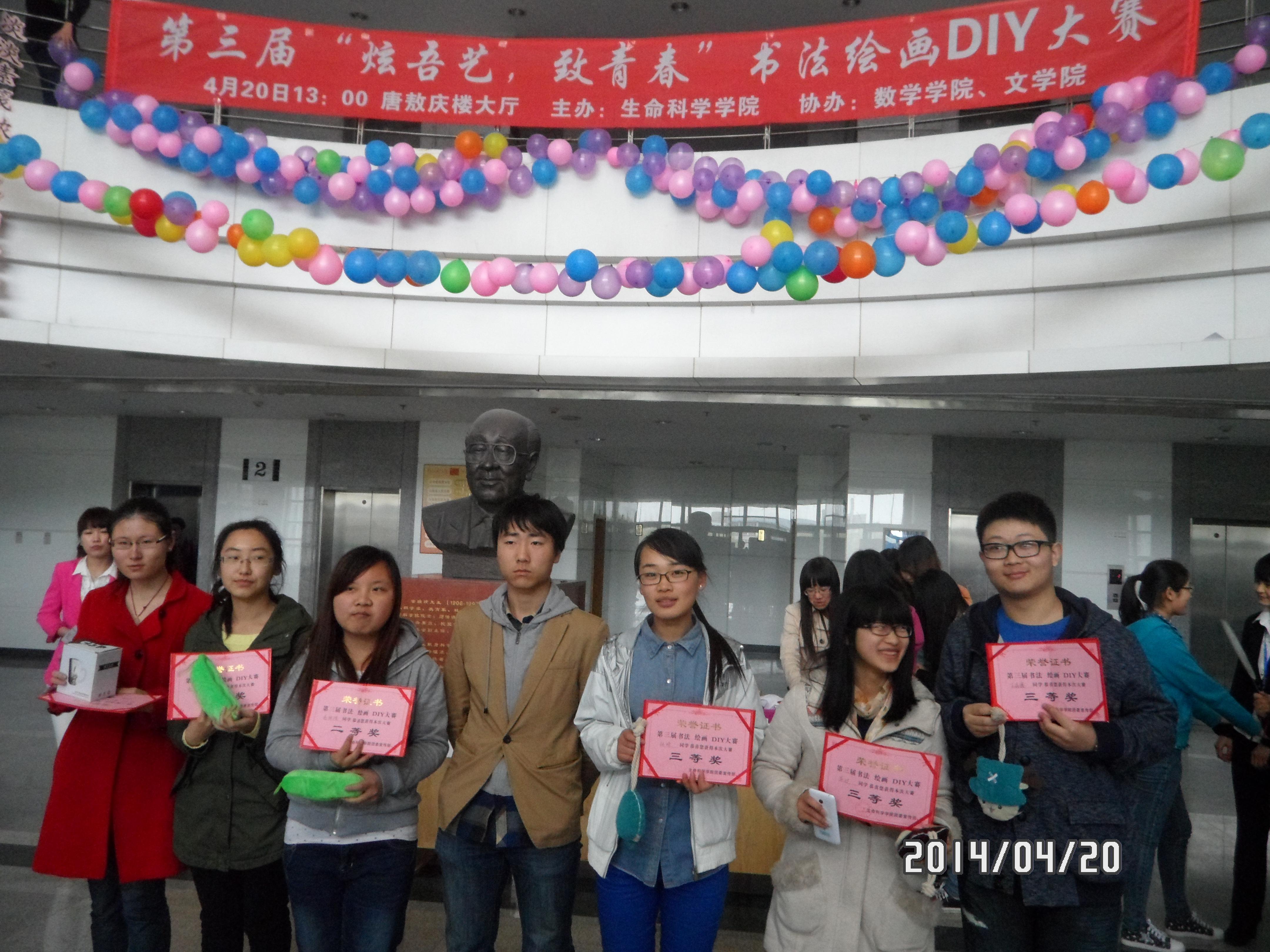 4月20日下午1:00主题为“炫吾艺,致青春”的第四届书法绘画DIY创意大赛在唐敖庆楼大厅隆重举行。本次活动由生命科学学院,h动画