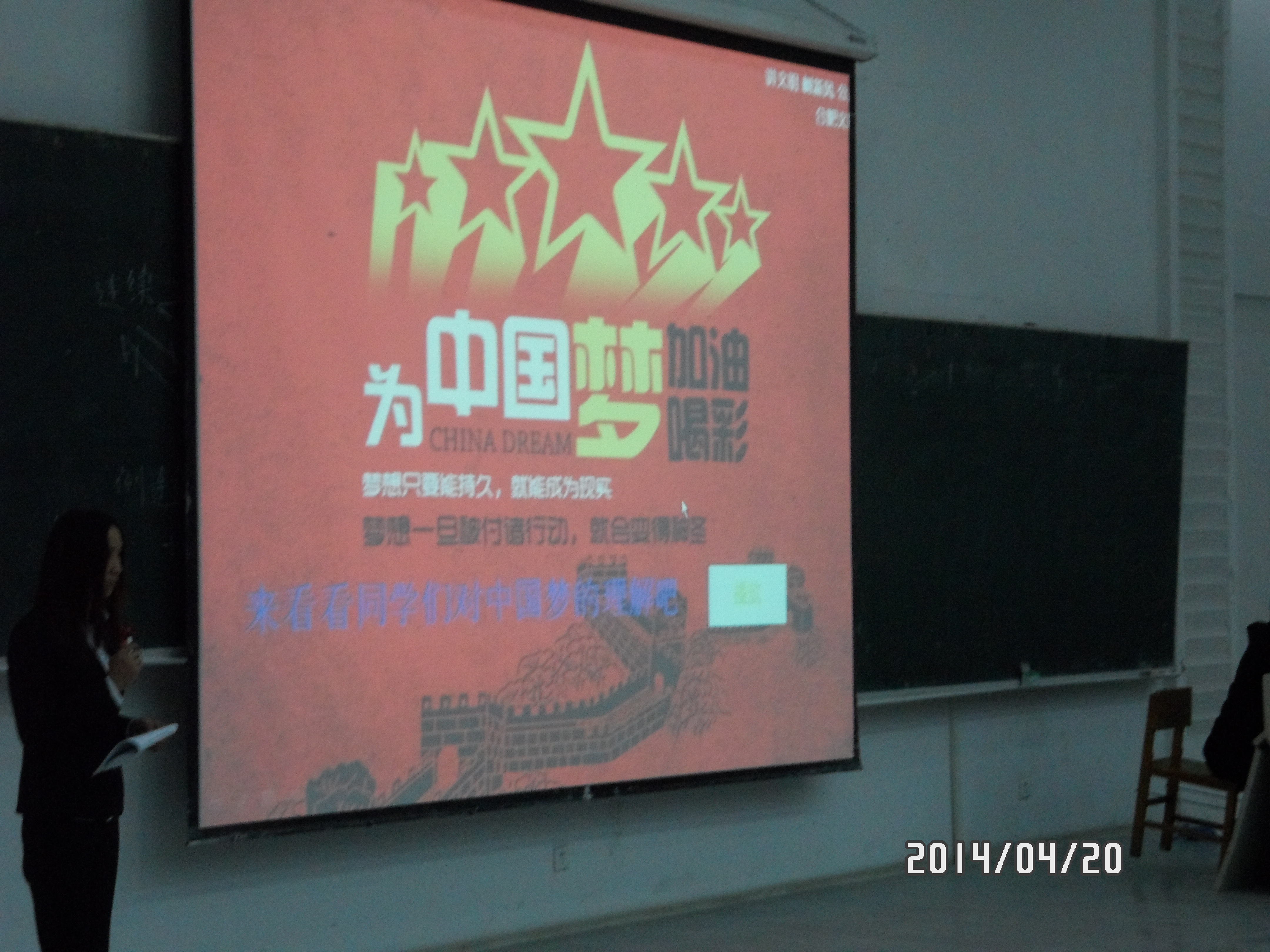 团委实践部主办的“追忆红色神韵,续写华夏新篇”中国梦主题团日活动在经信教学楼举办。中国梦最大的特点就是把国家、民族和个人作为一个命运的共同体。实现中华民族伟大复兴,就是中华民族近代以来最伟大的梦想。对于我们当代大学生来说,如何实践中国梦,我们有时会感到迷茫。本次团日活动就是希望通过追忆那些点燃革命之火,坚定勇往直前的共产党先辈们,从他们身上我们自己心中对中国梦的理解。本次活动旨在引导团员了解党的历史,领悟党的精神,切实增强党员的责任感和使命感。同时加深对中国梦的理解。