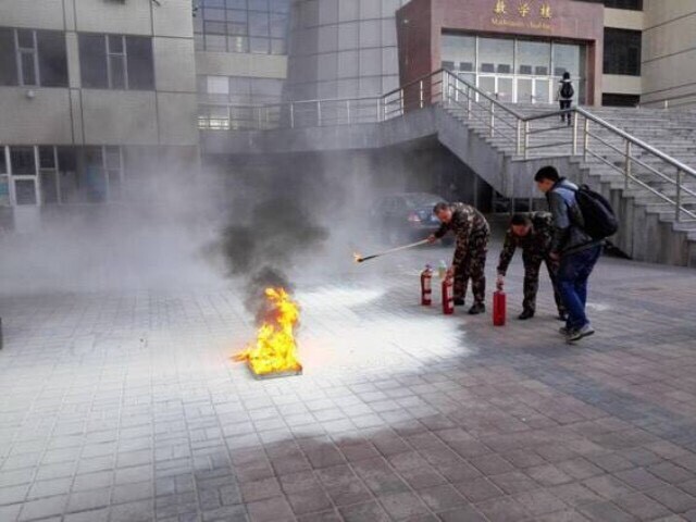 的学生们切身体会如何使用灭火器进行灭火,用实际操作来换取经验。让平时对灭火器等灭火工具了解不多的同学们获益匪浅。
