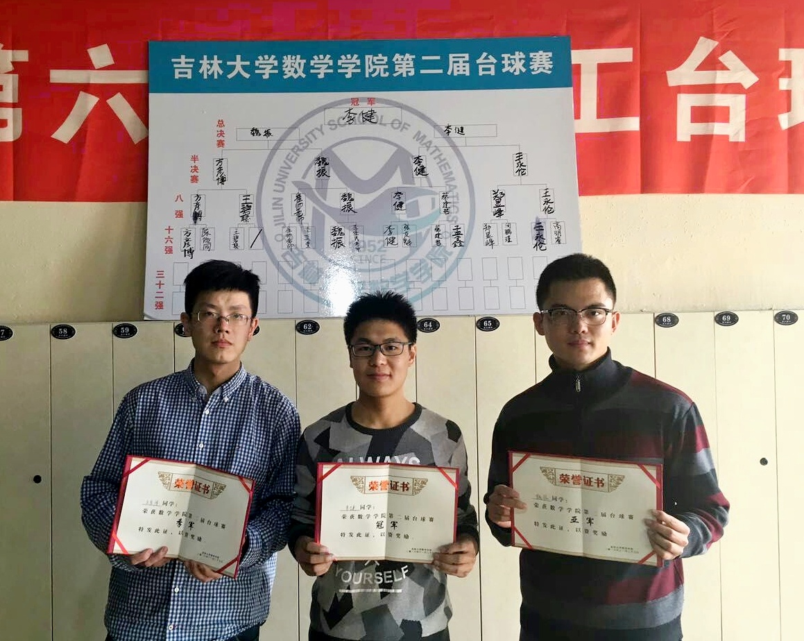 体育部根据抽签结果,将参赛选手分组进行比赛。选手们表现出色,精彩的球技展现的淋漓尽致。他们神情专注地观察着桌面上的所有细节,精确的走位与力道无不体现出选手们的专业水准。最后,经过5轮共14场激战,2014级李健同学获得此次比赛的冠军,2015级魏振同学获得亚军,2013级方彦博同学获得季军。