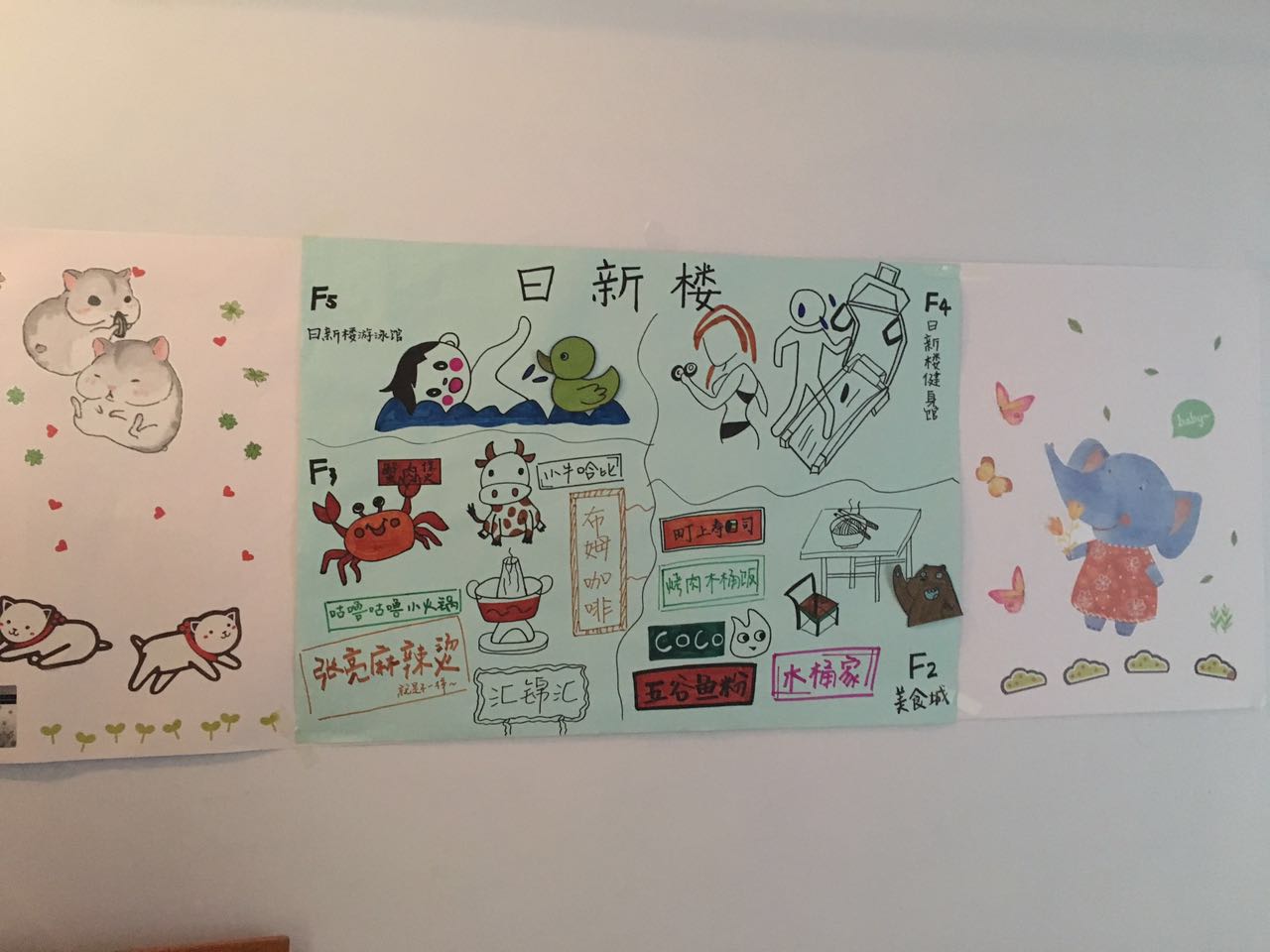 步入女寝,评委们就被楼道里张贴的生动精致的海报吸引了,海报上有学校里各种建筑,也有开学以来我们举办的各种活动,展现了h动画