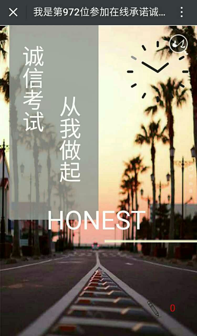 为了树立诚信考试的观念,营造风清气正的学习氛围,12月24日,新媒体中心微平台发起了主题为“诚信考试,我承诺”的线上诚信考试承诺书签署活动。
