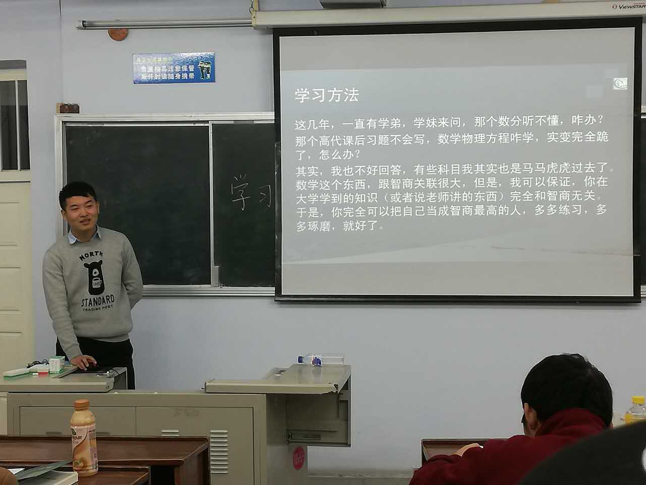 学生会学习部于11月25号晚在萃文一阶举行信息与计算科学专业学习经验交流会,并邀请到13级王震、李忠学长分享学习经验。