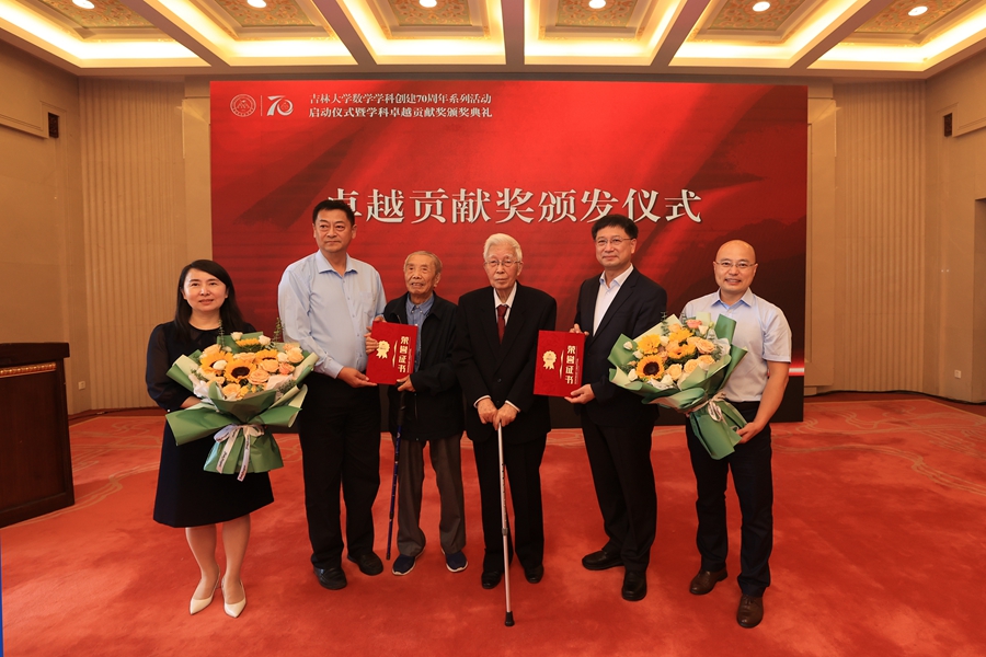 为表彰伍卓群先生、李荣华先生在吉大数学学科建设中的卓越贡献,h动画 授予两位先生“数学学科卓越贡献奖”。颁奖仪式上,张希、周羿为两位先生颁奖,张然介绍了两位先生为吉大数学学科教学科研工作做出的突出贡献,对我国高等教育与数学研究发挥的积极影响。