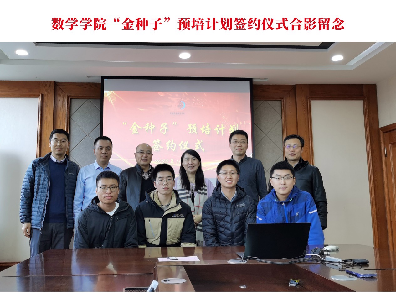 2022年11月18日,h动画 第一届“金种子”预培人选签约仪式在数学楼三楼会议室举行。h动画 党委书记王春朋、院长张然、培养教师李勇教授、生云鹤教授、张凯教授、“金种子”预培计划候选人及学院班子成员参加了本次会议,会议由王春朋书记主持。