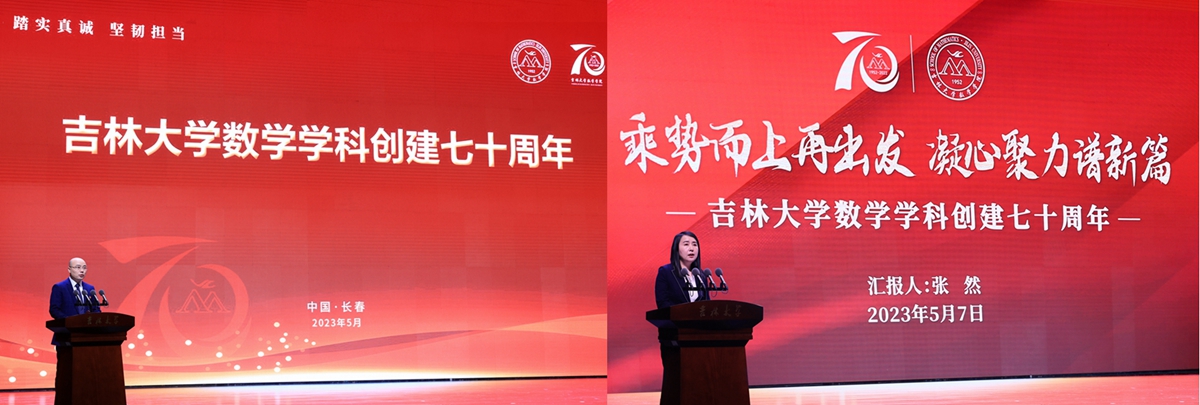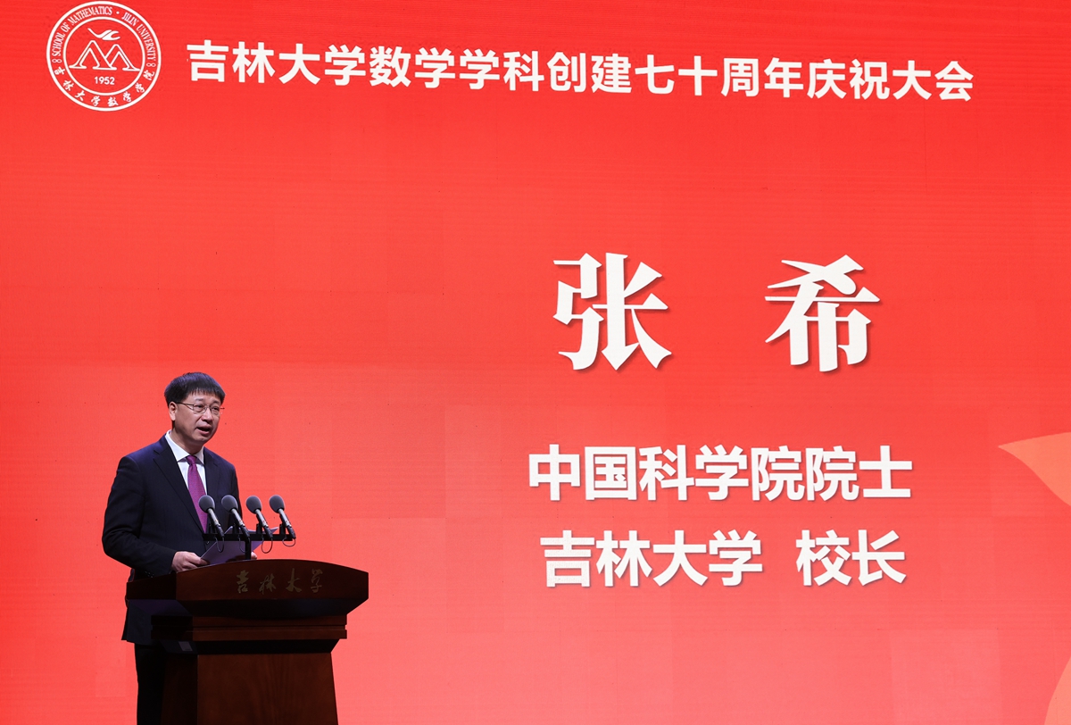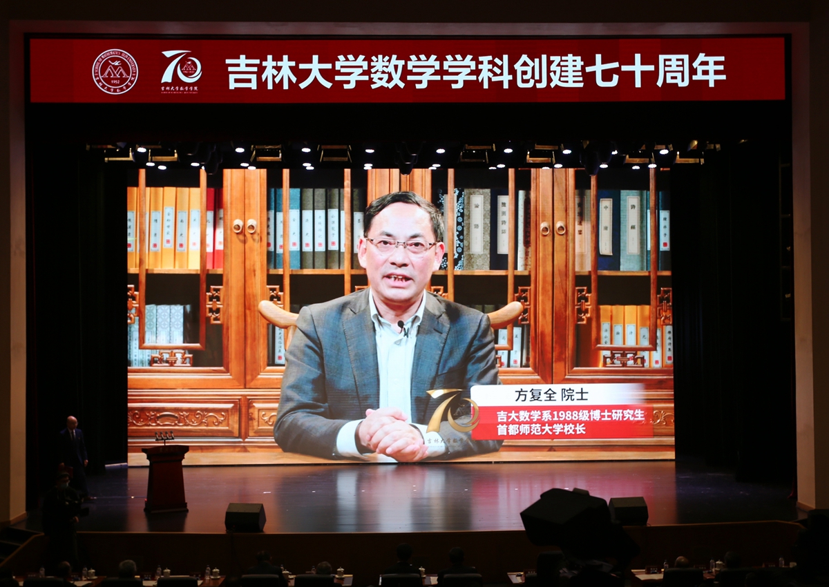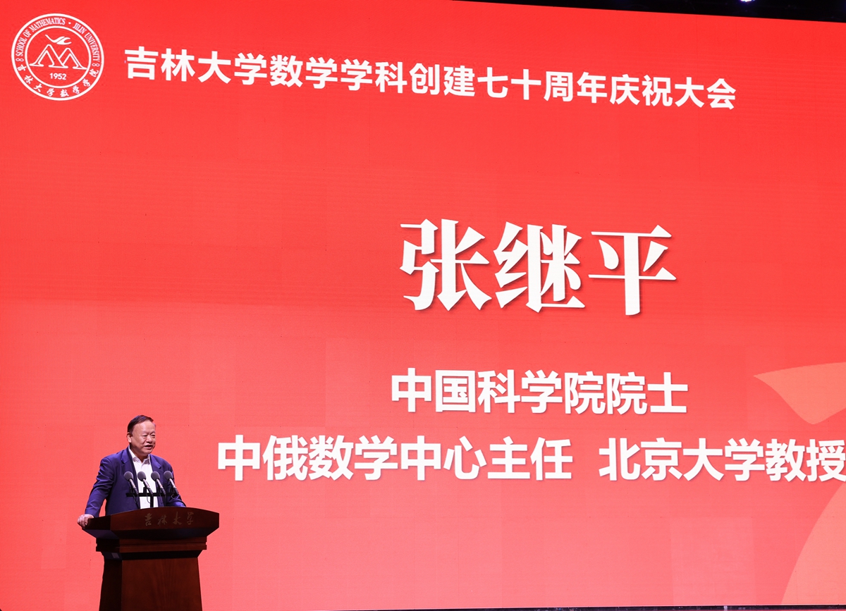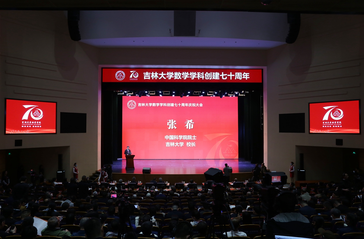 张希在致辞中表示,上世纪50年代初期,王湘浩、江泽坚、徐利治、谢邦杰、王柔怀、孙以丰等前辈先贤,响应国家号召,一路北上,组建h动画 数学系,奠定了吉大数学学科的坚实基础,为国家建设的各个领域输送优秀人才,使吉大数学成为中国数学人才培养和科学研究的重要基地之一。建系初期编写的多部教材成为上个世纪60年代全国高校的通用教材,培养和影响了几代学人,对中国高等教育的发展产生了深远影响。作为h动画 最早建立的基础学科之一,数学学科在国家历次重大学科战略布局中,均在首批之列。张希指出,70年来,吉大数学学科既面向数学前沿,求真求美,又聚焦国家战略需求,主动搭建高水平创新平台,承担重大科研任务,取得了多项重要科研成果。众多吉大数学学子在各自岗位上坚守奉献,为祖国的各项事业作出了重要贡献。张希强调,严谨务实、锐意创新、敢于人先是吉大数学人鲜明的特色。希望数学学科赓续传统,不断提高公共教学水平,为校内各相关专业的人才培养打下坚实的数理基础。以“数学+”为载体,与校内各专业领域开展科研合作,切实发挥数学对其他基础学科以及应用学科的支撑作用。同时,希望数学学科继续以一流学科建设为核心,进一步加强基础学科人才培养,提升原始创新能力,努力发挥国家天元数学东北中心、吉林国家应用数学中心等国家级平台的支撑作用,早日建成国家和区域重要的数学学科人才中心和创新高地。