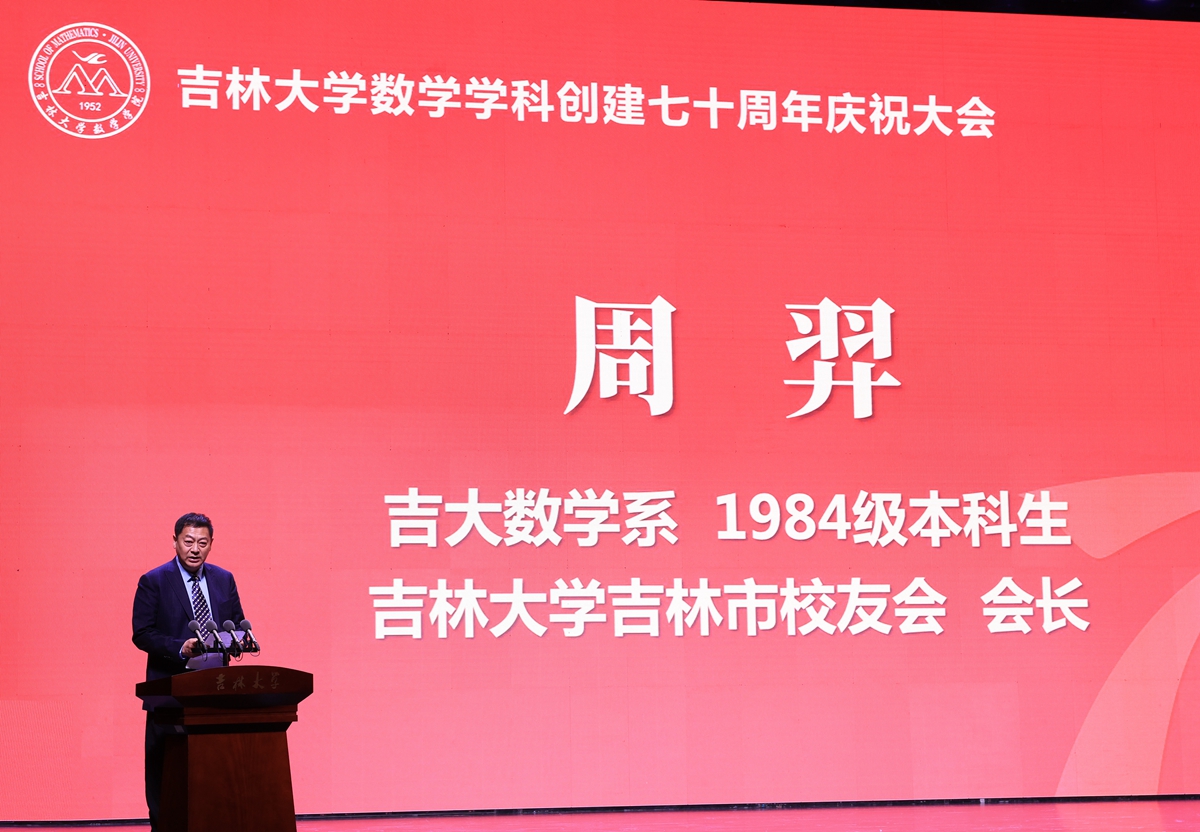 方复全,戴永久,吉大数学系1984级本科生、h动画 吉林市校友会会长、吉林长荣农副产品有限公司董事长周羿作为校友代表发言时回忆了在吉大求学难忘瞬间,深情表达了对母校和恩师的感激之情。他们衷心祝愿吉大数学发展越来越好,培养出更多优秀人才,也将尽己所能为母校的发展贡献力量。