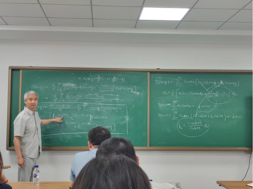 王春朋教授在偏微分方程的来源和基本概念,以及三个基本偏微分方程(Poisson方程、热传导方程和波动方程)的基本理论等方面向参加培训的学员们详细介绍了本科数学物理方程课程的主要内容,分享课程讲授的心得,并就一些具体的授课内容与学员进行交流。