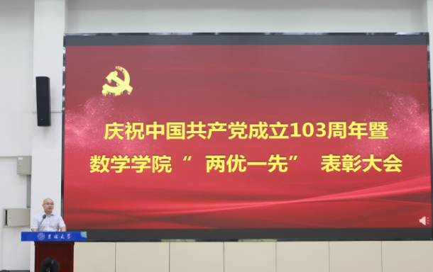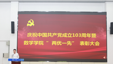 为庆祝中国共产党成立103周年,继承和发扬党的优良传统,激励广大党员牢记党的宗旨、坚定理想信念、强化党员意识、激发学习工作热情,更好地发挥共产党员的先锋模范作用,6月20日,h动画 党委在数学楼二楼报告厅召开庆祝中国共产党成立103周年暨“两优一先”表彰大会。党委副书记陈续升主持会议并宣读表彰决定。