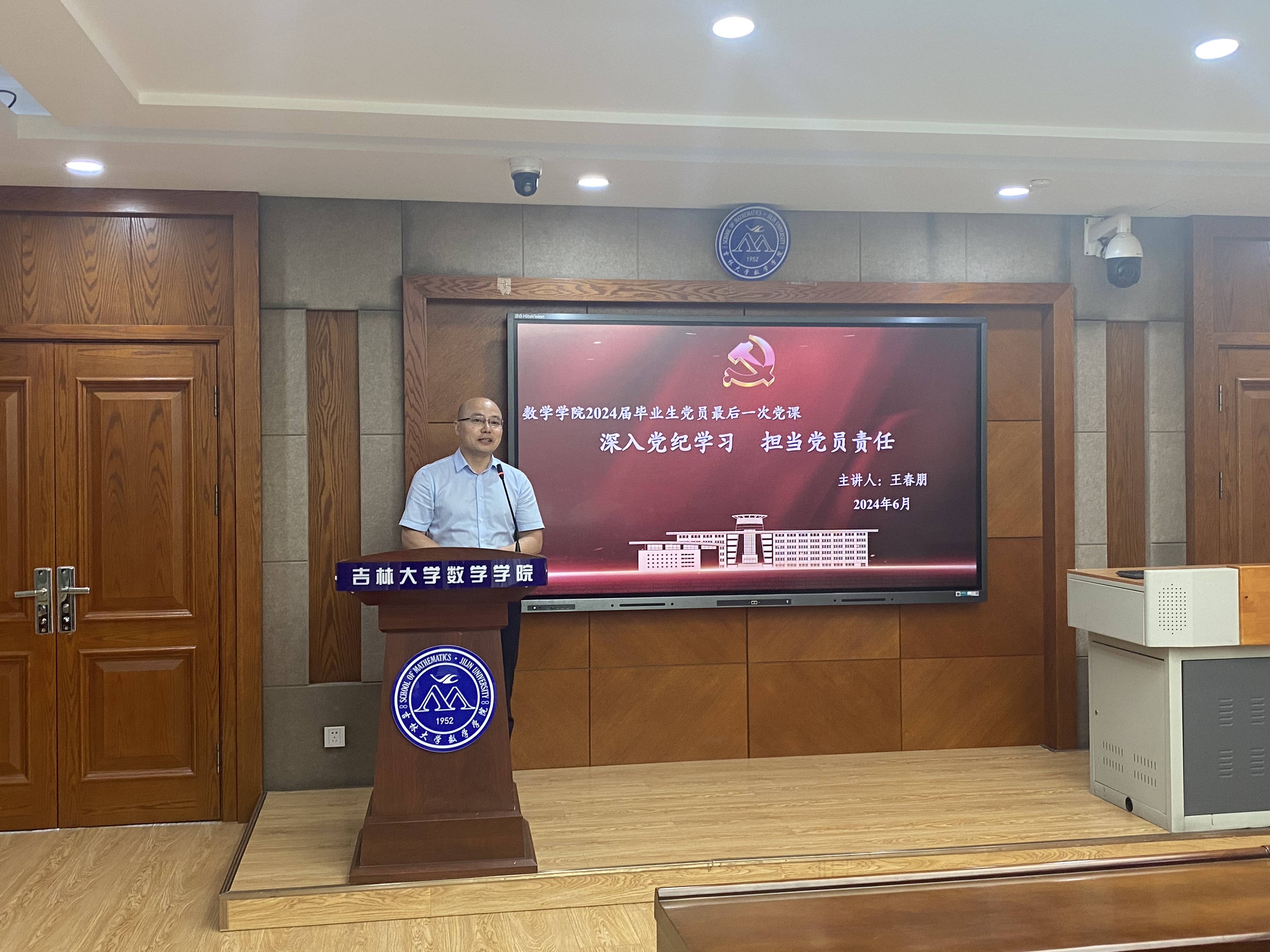 为推动党纪学习教育走深走实,教育引导全体毕业生党员增强纪律意识,在知敬畏、存戒惧、守底线中夯实理念信念之基,在推进强国建设、民族复兴伟业中展现青春作为、彰显青春风采、贡献青春力量。6月17日,h动画 党委书记王春朋为2024届全体毕业生党员讲授了毕业前“最后一次党课”。