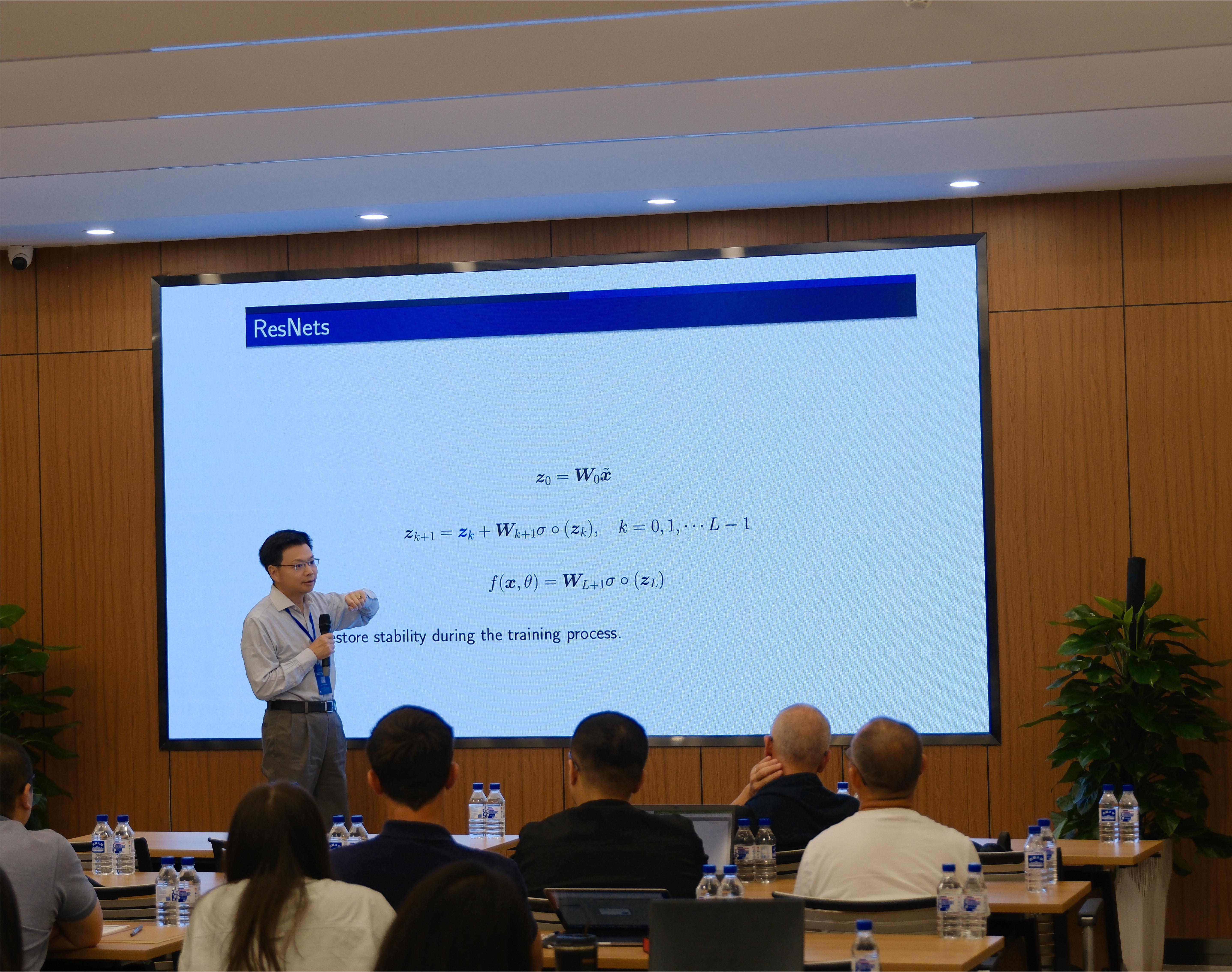 主题报告阶段,来自北京大学、清华大学、复旦大学、北京应用物理与计算数学研究所、埃尔朗根-纽伦堡大学等十余所国内外高校及研究所的二十余位专家学者围绕应用数学和机器学习的最新趋势作了精彩的学术报告。报告后,与会专家学者进行了自由讨论,分享最新的研究成果和经验,同时探讨前沿学术进展。