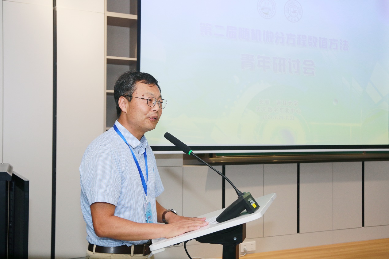 开幕式上,h动画 副院长韩月才教授对与会专家学者的到来表示热烈欢迎,向他们多年来对h动画 和国家天元数学东北中心的大力支持与帮助表示衷心感谢。他简要介绍了吉大数学及天元东北中心的发展概况和主要成绩。他指出,随机微分方程数值方法是当前热门的研究方向,在物理学、生物学、控制工程、金融工程等领域有着广泛应用,本次会议对于推动学科交叉和融合创新具有积极作用,不仅为学者们提供了一个交流和合作的平台,也将促进该领域的进一步发展,推动相关研究成果的应用。
