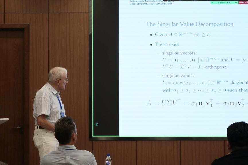 主题报告阶段,来自苏黎世联邦理工学院、勃艮第大学、香港城市大学、上海交通大学等十余所国内外高校及研究所的二十余位专家学者围绕应用数学和机器学习的最新趋势作了精彩的学术报告。报告后,与会专家学者进行了自由讨论,分享最新的研究成果和经验,同时探讨前沿学术进展。