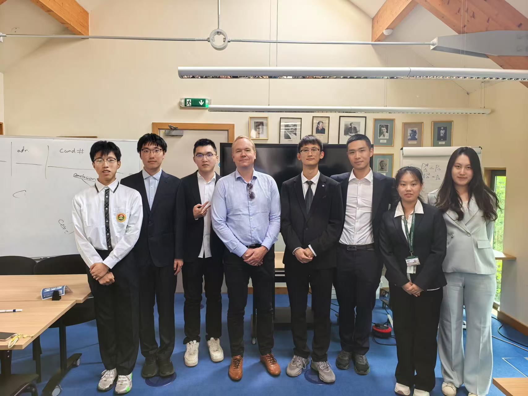 在本次暑期学校行程中,剑桥大学乔西·萨伊尔(Jossy Sayir)教授与安德斯·汉森(Anders Hansen)教授带来了精心设计的教学内容。课堂上,教授们以深入浅出的方式传递抽象代数、算法可靠性等专业知识,通过“Lecture+Supervision”的剑桥特色模式,引导学生结合通信系统编码、医疗AI等实际场景展开深入探讨,师生互动氛围热烈而融洽。配套的小组工作坊与课题研究为学生巩固理论知识、提升实践应用能力提供了有效助力,同学们通过团队协作进一步深化了对课程内容的理解。学习期间,师生们积极与当地学者、学生通过Fellow Seminar、Fellow Activity等形式开展跨文化学术交流,拓宽了学术视野与交流渠道。项目后期,学生以小组形式完成课题成果汇报进行Final Evaluation,通过考核后参与闭幕式,顺利结业并获得由授课教授签名的官方证书及项目成绩报告。