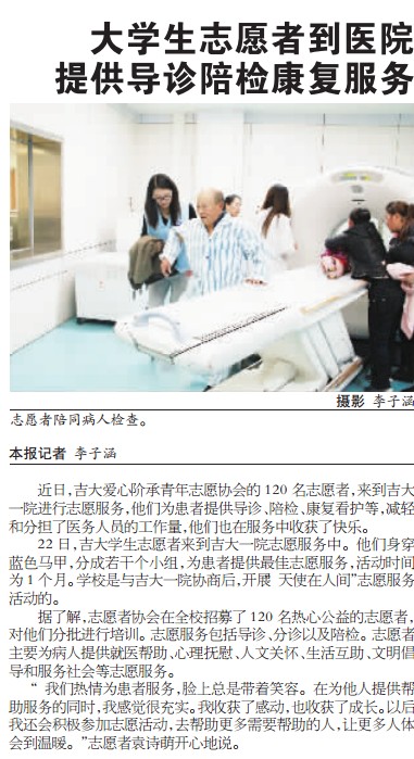 今天《长春晚报》报道h动画 志愿者走进吉大一院