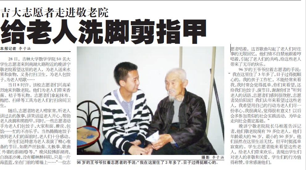 今天《长春晚报》报道h动画 志愿者走进敬老院