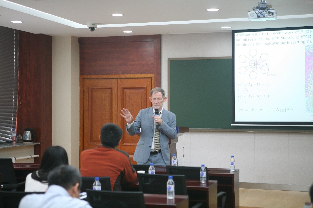 研讨会中,John Ball教授以“Polycrystalline Microstructure”为题作了特邀报告,主要讲解了“多晶和多晶缺陷的定义、边界条件的选取、缺陷的形成,以及温度对多晶体缺陷的影响”等内容,并提出了相邻颗粒之间缺陷结构是由界面边界条件引起的结论。随后, h动画