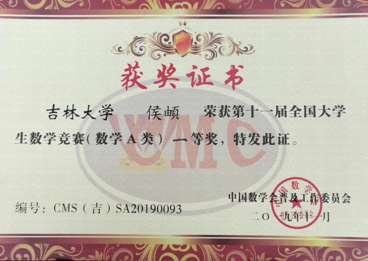 获得全国初赛数学专业组一等奖9人、二等奖14人、三等奖25人;全国初赛非数学专业组一等奖70人、二等奖104人、三等奖175人。吉林省大学生数学竞赛数学专业组一等奖23人、二等奖73人;吉林省大学生数学竞赛非数学专业组一等奖174人、二等奖432人;吉林省优秀指导教师9人。另外有7名同学成绩优异,获得了2020年3月份在武汉大学举办的全国决赛资格,占吉林省的决赛参赛名额的44%,比去年增加了1个名额。这7名同学分别是非数学专业组的颜慈霖、罗常凡、张鹤锐、王智超,以及数学专业组的侯頔、冯雨晨、朱奕坤。特此向这7位同学表示祝贺,希望他们在2020年3月的全国决赛中再创辉煌!