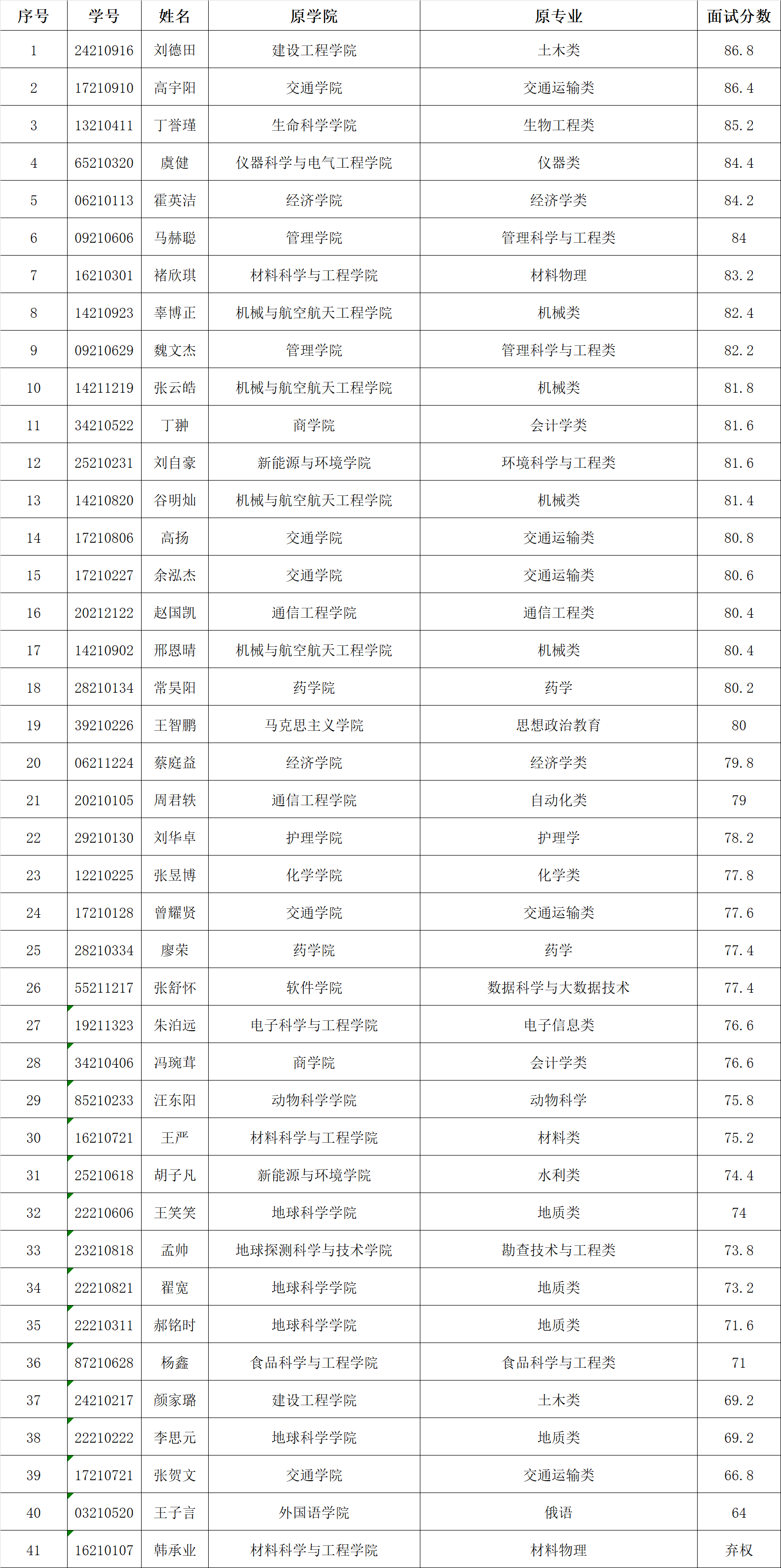 转专业拟录取人员名单予以公示。