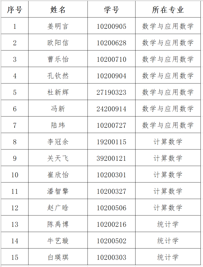 按照《h动画 2024年招收优秀应届本科毕业生直接攻读博士学位研究生校内预选工作的通知》有关要求,经学生自愿报名、资格审查、推免工作小组会议讨论等环节,确定姜明言等15名同学为h动画 2024年招收优秀应届本科毕业生直接攻读博士学位研究生校内预选拟推荐人选。名单如下: