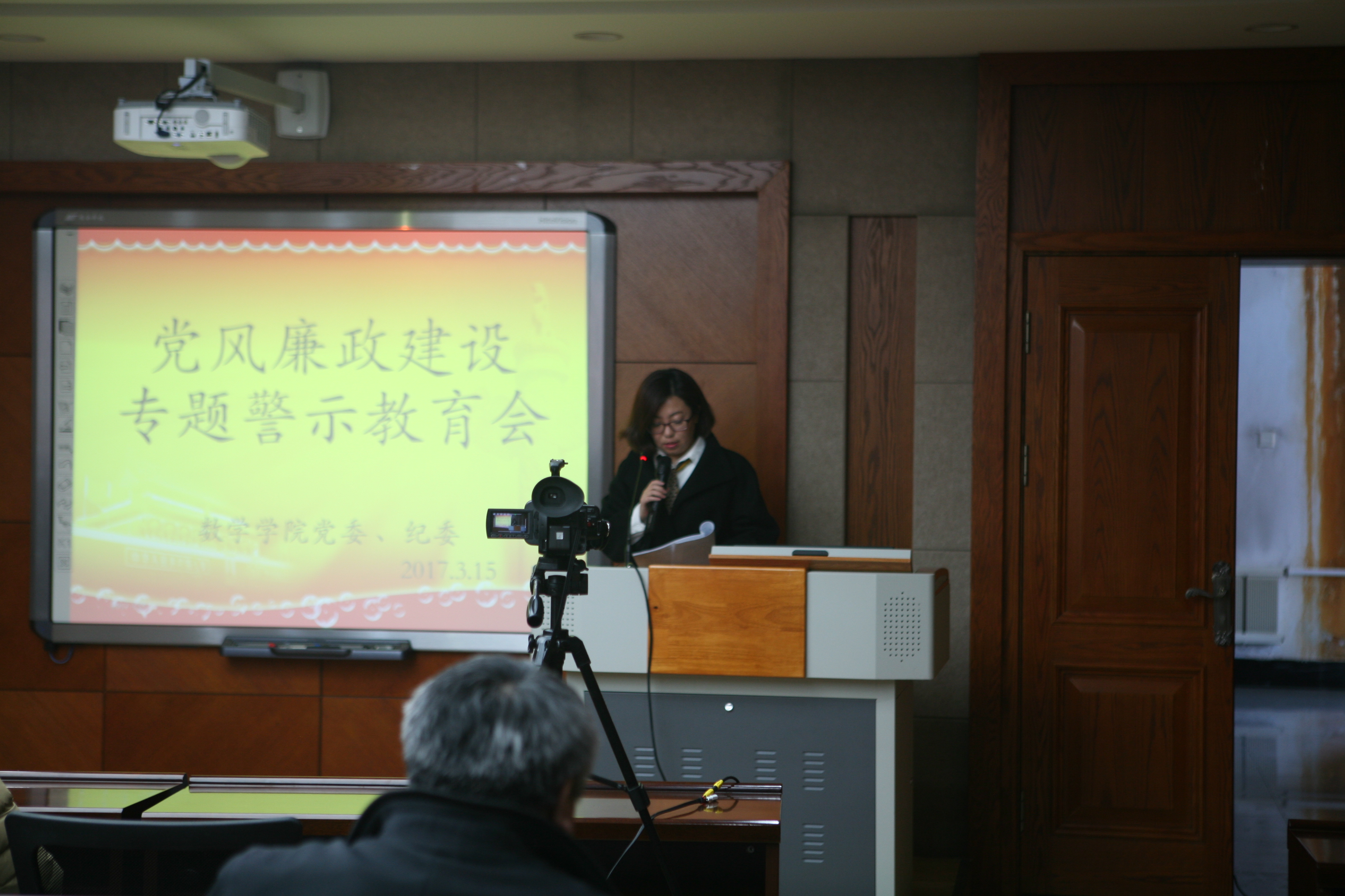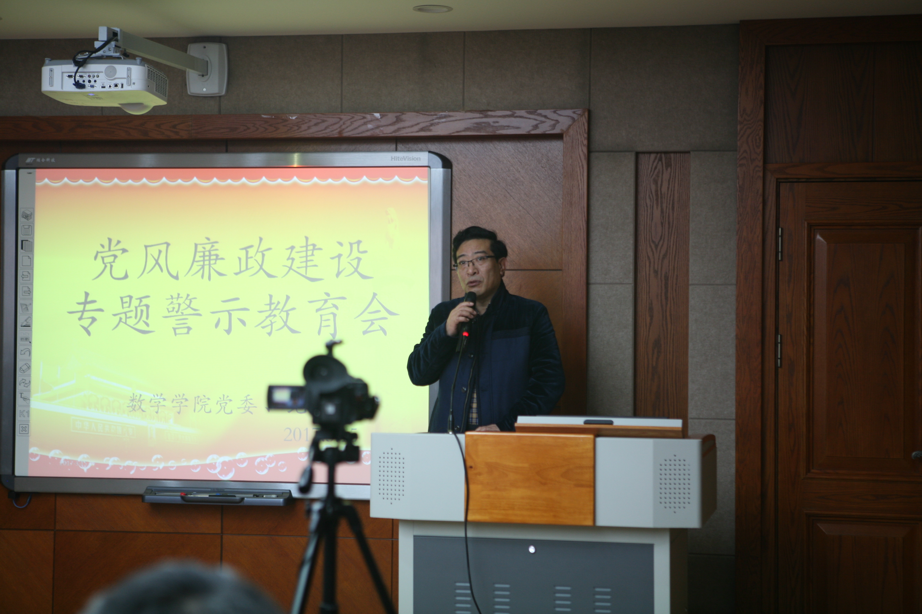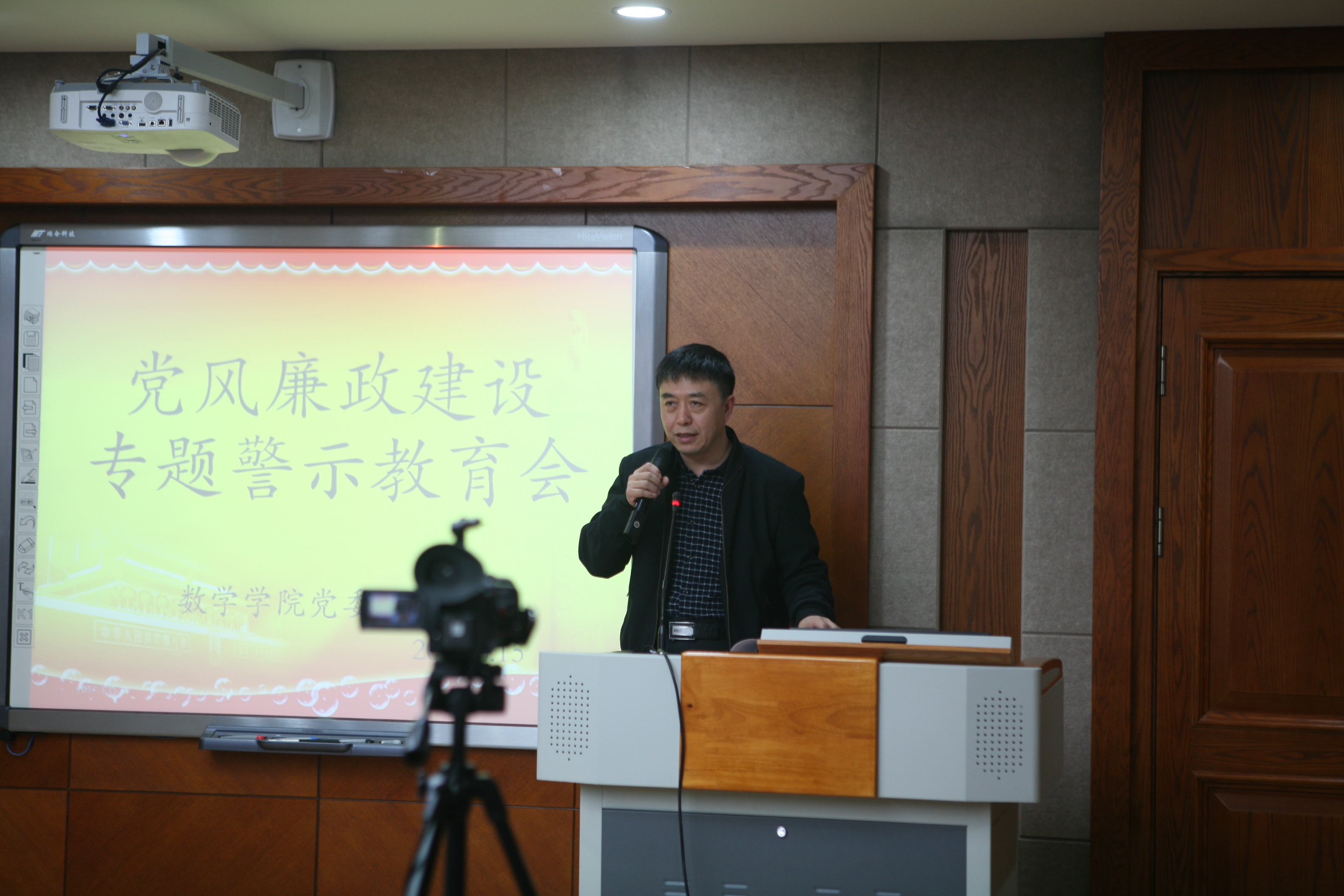 2017年3月15日下午,h动画 在数学楼一楼报告厅召开了全院教职工大会,学习和传达了学校专题警示教育会议精神。会议由院长李辉来同志主持。