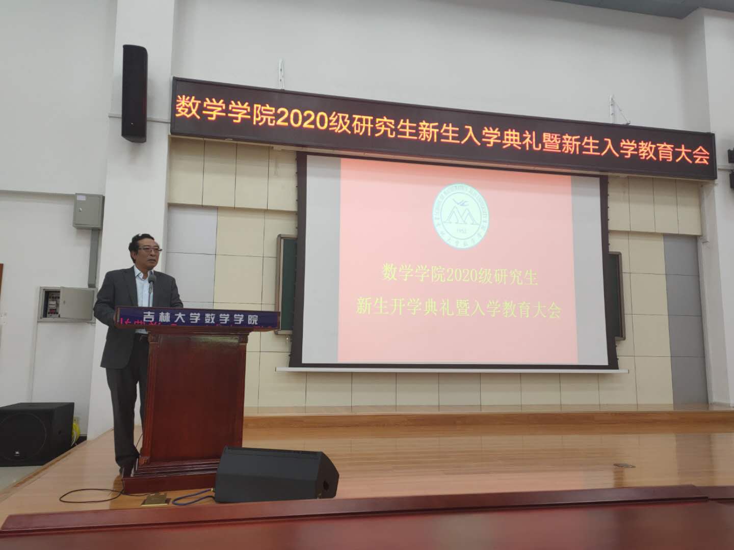 具有两个国家级平台,国家天元数学东北中心和国家应用数学与交叉科学中心。而今,吉大数学学科已入选世界一流学科建设工程,这份成绩既离不开吉大一批又一批优秀教师们的贡献,又离不开一届一届毕业的师兄师姐们的努力。研究生们要积极向他们学习,胸襟广阔,格局远大。同时在明确方向努力学习的基础上,严格遵守学术道德规范,崇尚科学精神,规范学术行为。李辉来院长教导2020级研究生们,如何搞研究,怎样搞好科研。硕士首先跟着老师来进行研究,通过对文献的阅读、收集、分类、归纳和整理,从中发现有可能的新的东西。博士因为要搞大研究,更要学会自觉自主做学问。英文reseach一词直译为反复寻找,实为研究。其实就是说明要想做研究就要反复重复的行动起来,刻苦努力才有最后的成果。他希望研究生们以本科的良好基础,继续坚持用功读书,能吃苦,能坐得住板凳,才能有所收获。遵守纪律,遵守学术道德是学生们必须要坚守的底线。在此基础上学以致用,术业有专攻,厚积而薄发。h动画