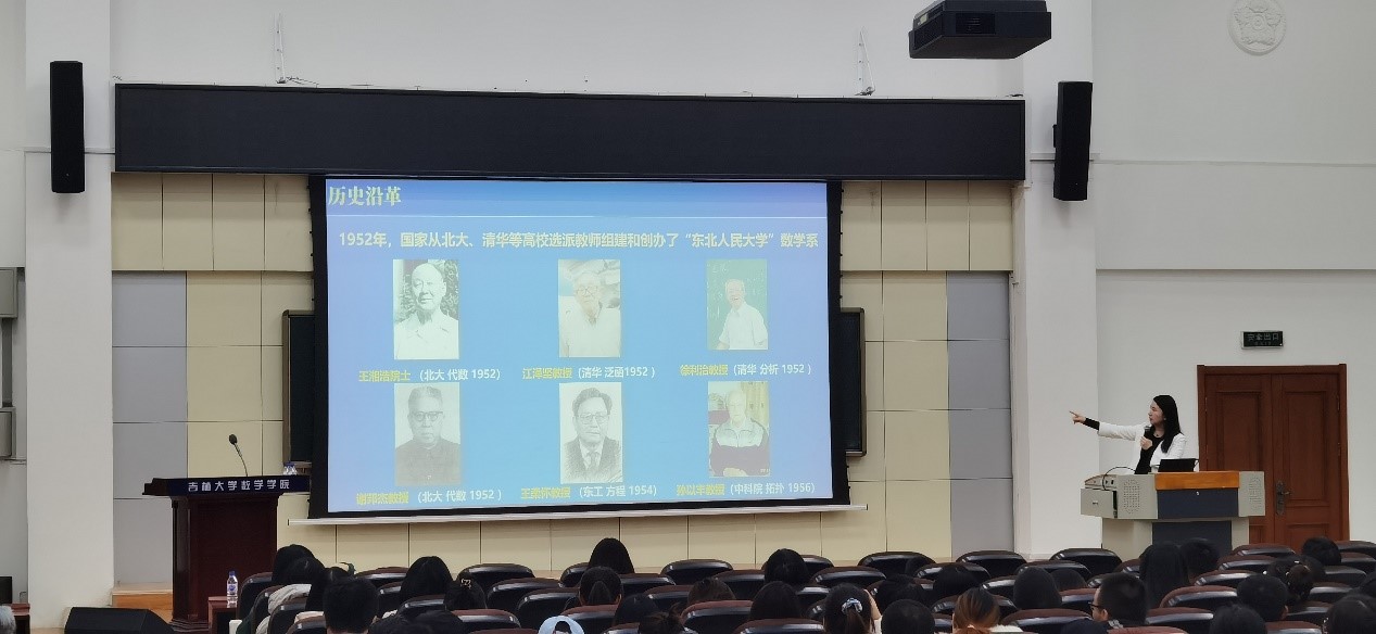第二项内容,张然教授向同学们讲述了h动画 数学学科近70年的奋斗历程,从先辈们创系兴学到扎实的教学传统,从潜心科研到人才培养,从“十四五规划”到一流学科建设,生动地诠释了“踏实肯干、求真务实、无私奉献”的吉大数学精神。
