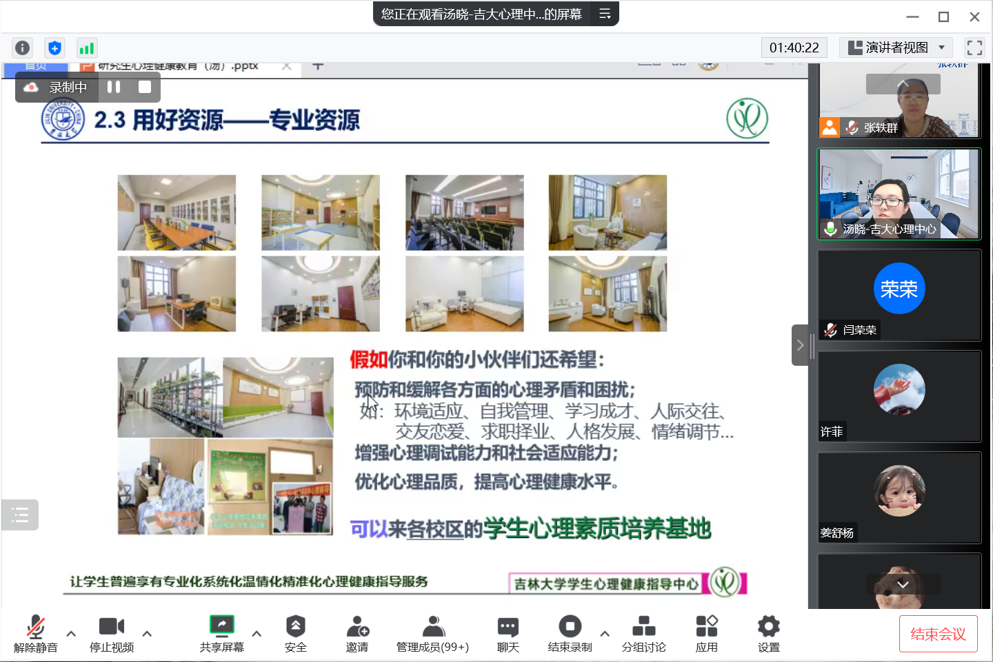 汤老师有理有据、声情并茂的讲解,为大家带来了一堂干货满满的讲座。通过此次讲座,帮助同学们丰富了心理健康知识,了解了在有需要的时候应该如何获取帮助。关注心理健康,是每位同学学习研究之路上的重要一环,需要我们共同努力。