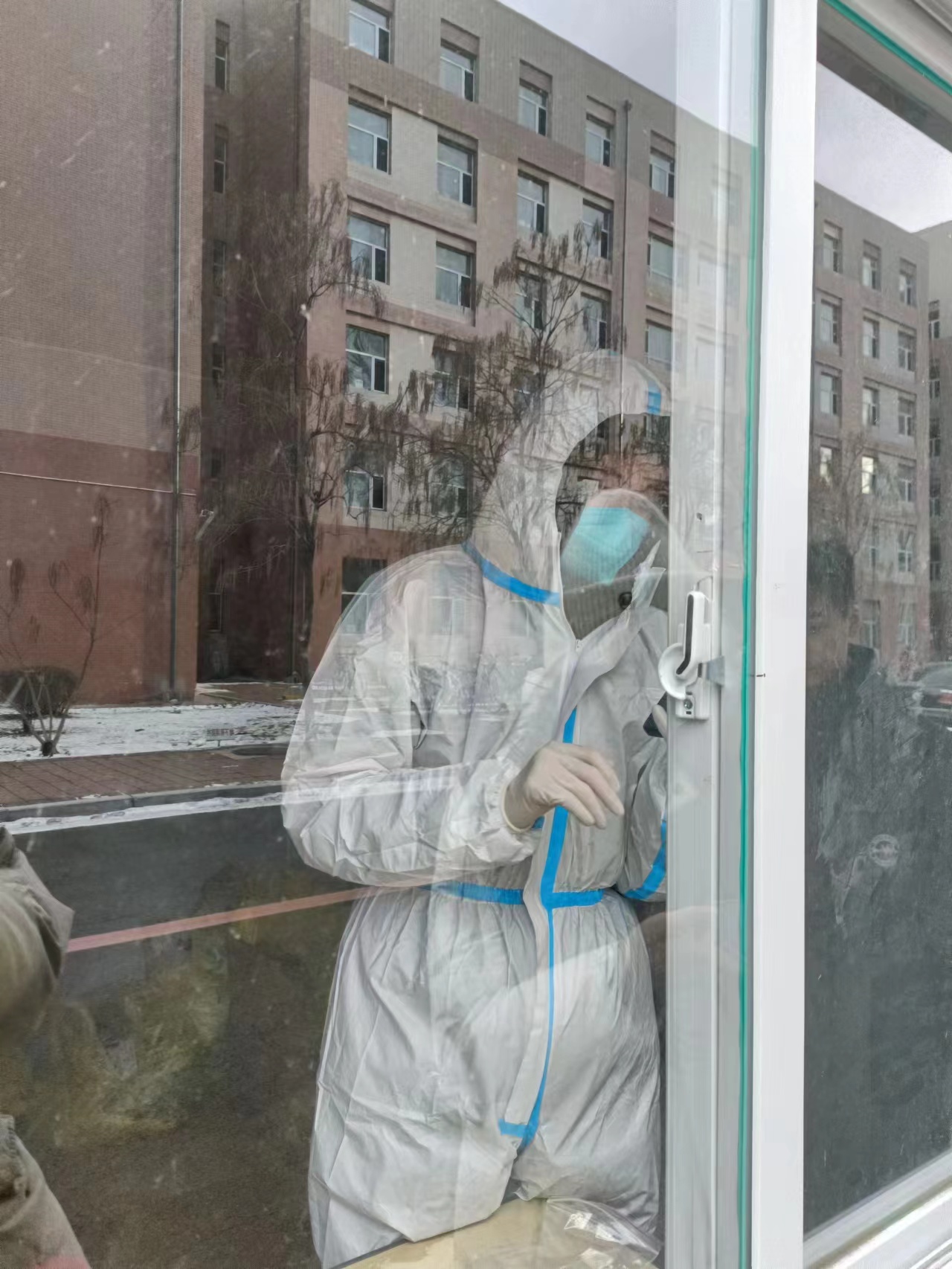 11月30日下午2点,h动画 的40名志愿者们就在各个核酸监测点完成集结,他们在本就厚重的羽绒服外穿上防护服,每个同学们面临的都是将近5小时不能喝水、不能脱下防护服,还要在东北11月的凌冽寒风中坚守,即使手被冻僵,面罩上已有一层薄薄的冰,但是我们的数学大白们仍没有一丝松懈的积极配合着检测点医务人员的工作。2021级研究生杜美璇同学表示:“学校的后勤保障工作经验丰富、考虑周到,十分贴心的为各个大白们准备了暖宝宝和加热鞋垫,即使寒风萧瑟,也没感到十分寒冷。完成了一组又一组同学们的扫码工作,反而有些许兴奋,为自己终于能在这场抗疫持久战中贡献一份自己的微薄力量而开心。”就是这样一个又一个平凡的身影,化作点点星光,照亮着校园里的每一个角落,凝聚起战胜疫情的磅礴力量。