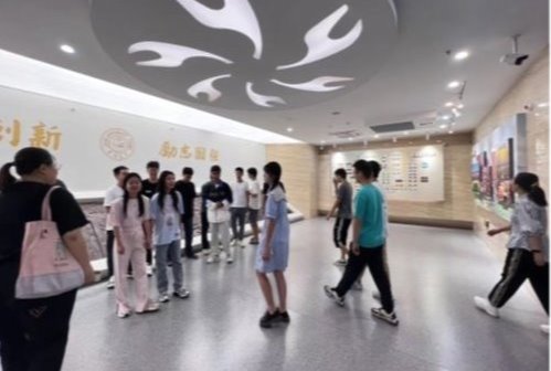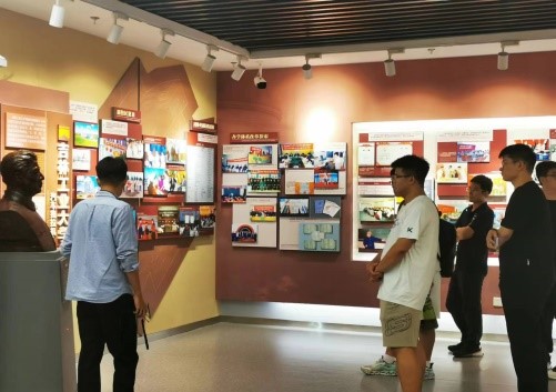 的校史。大家时而驻足观看展品,时而低头记录所思所得。