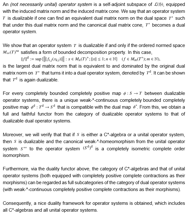 报告题目:Dual spaces of operator systems
