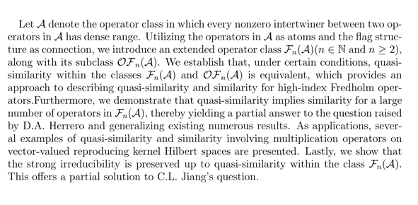 报告题目:On the quasi-similarity of operators with flag structure