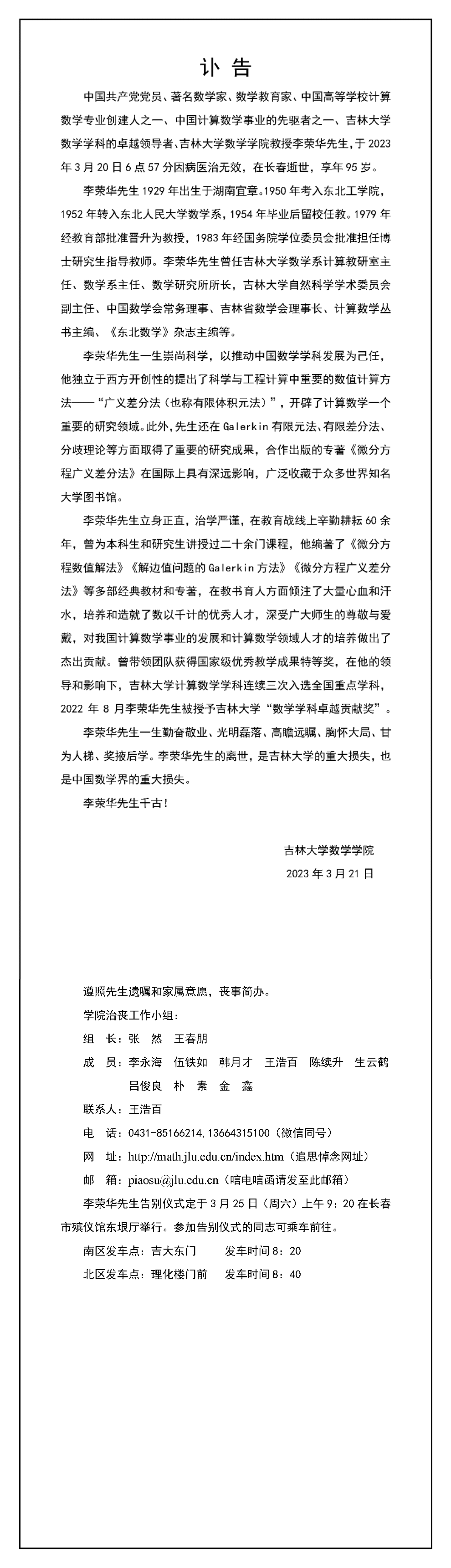 我国著名数学家、h动画 教授李荣华先生逝世