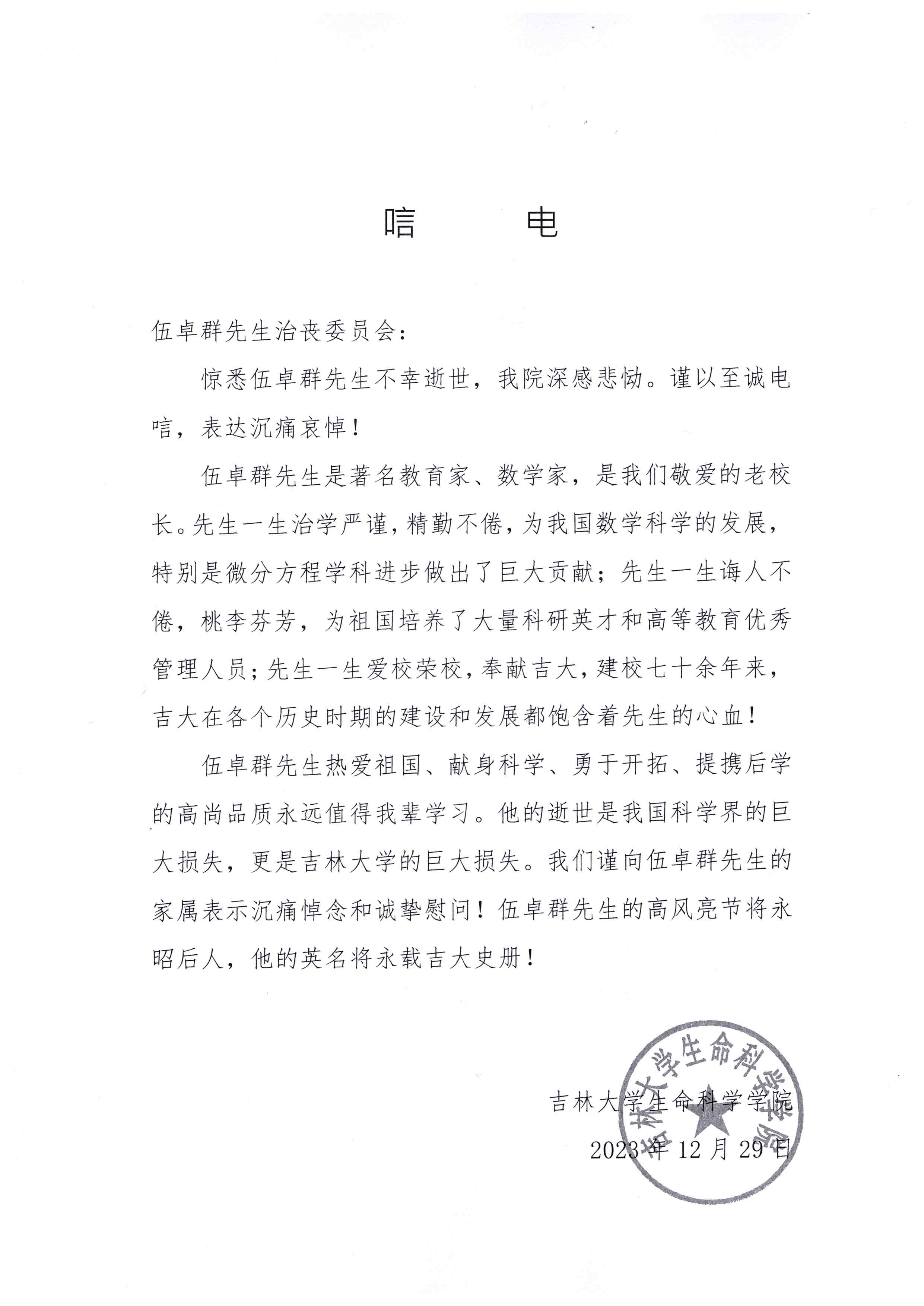 h动画 生命科学学院唁电